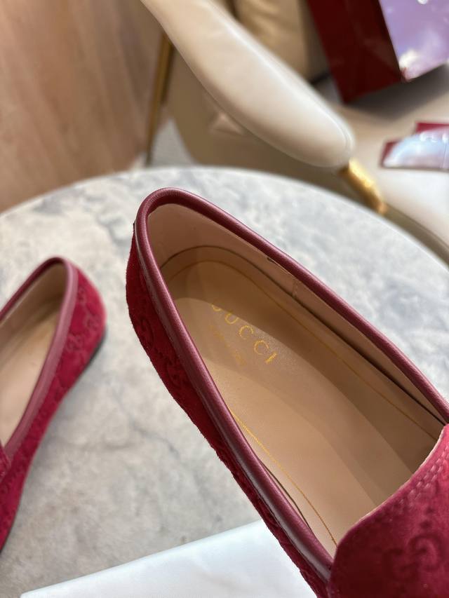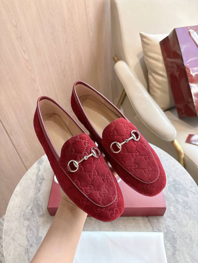 1819-10* 酒红 35-42 作为Gucci设计传承的杰出代表,Jordaan系列饰马衔扣乐福鞋生动彰显经典优雅格调。这款鞋履采用品牌标志性字母交织图案光滑绒面材质,成就隽永经典。这款鞋履材质柔软,廓形精致流畅,彰显日常优雅风范。