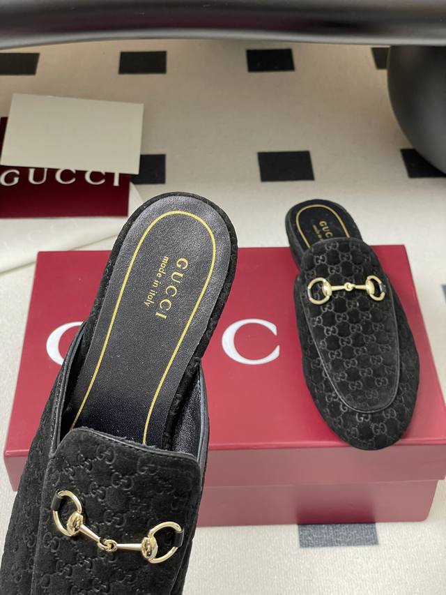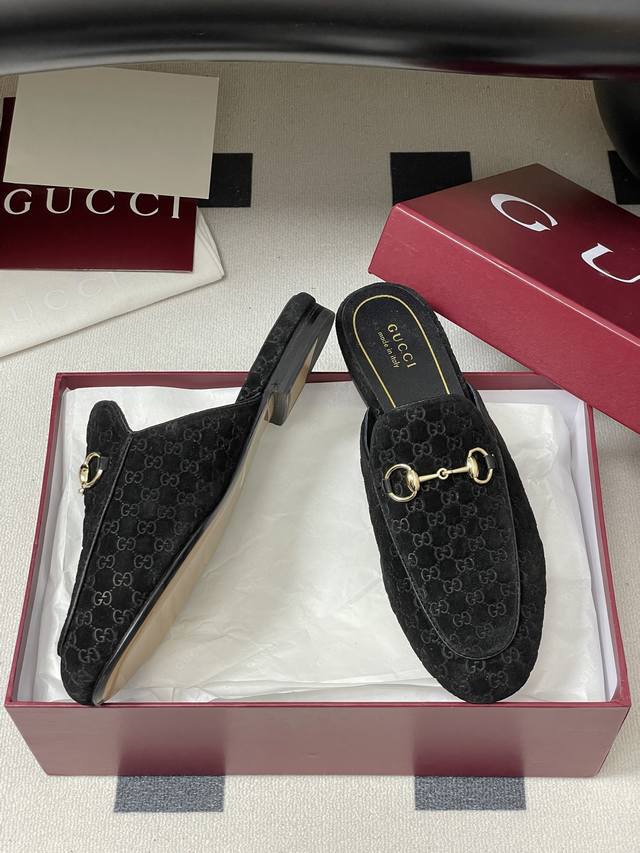 2025早秋新配色Gucci 古驰Princetown经典款系列最新版面双G绒面穆勒鞋马衔扣平底半拖鞋