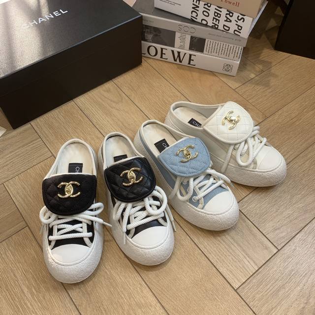 2025春夏新款Chane*小香书包扣休闲鞋帆布鞋拖鞋半拖单鞋