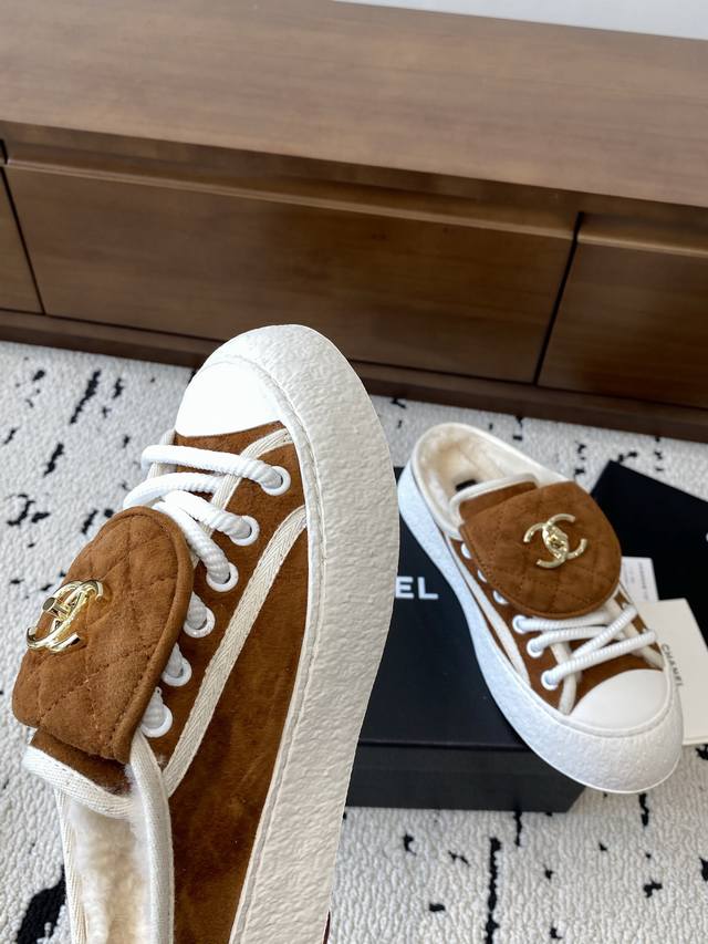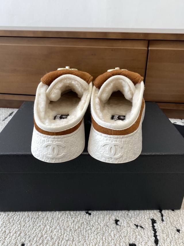 2025秋冬新款Chane*小香书包扣休闲鞋进囗羊绒面拖鞋半拖毛毛鞋