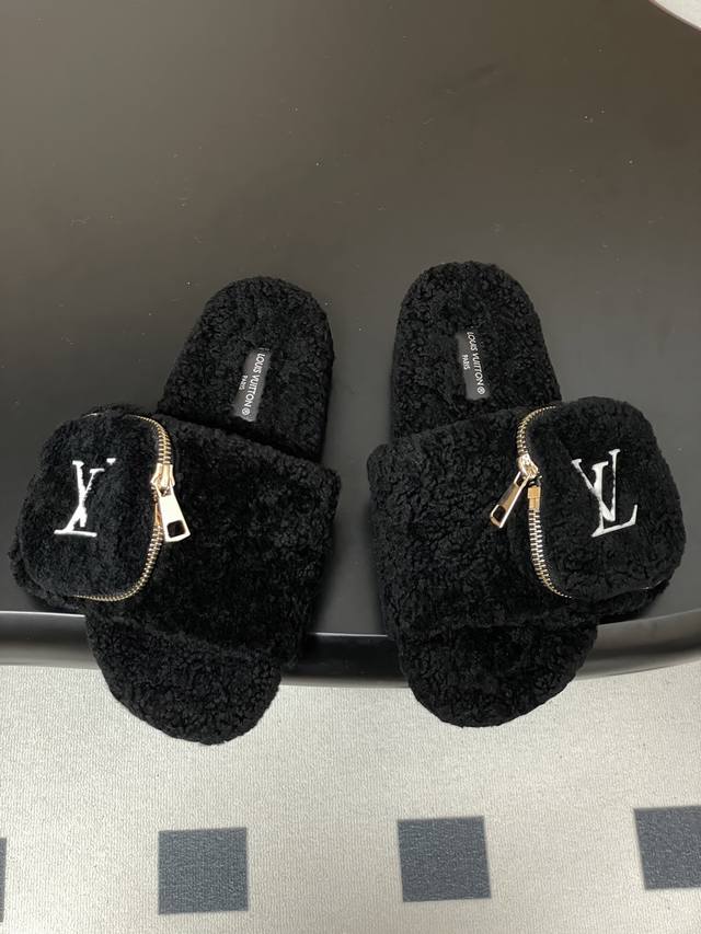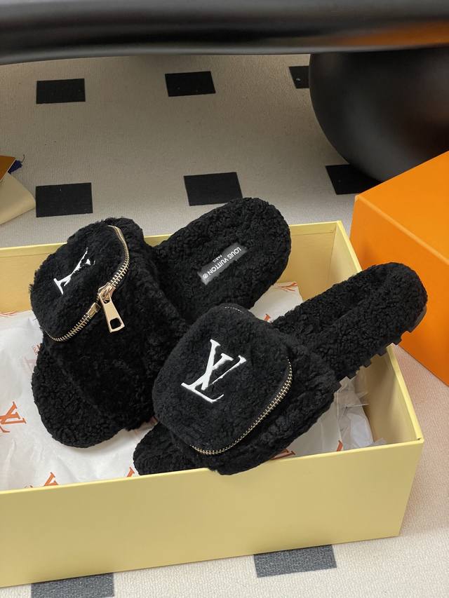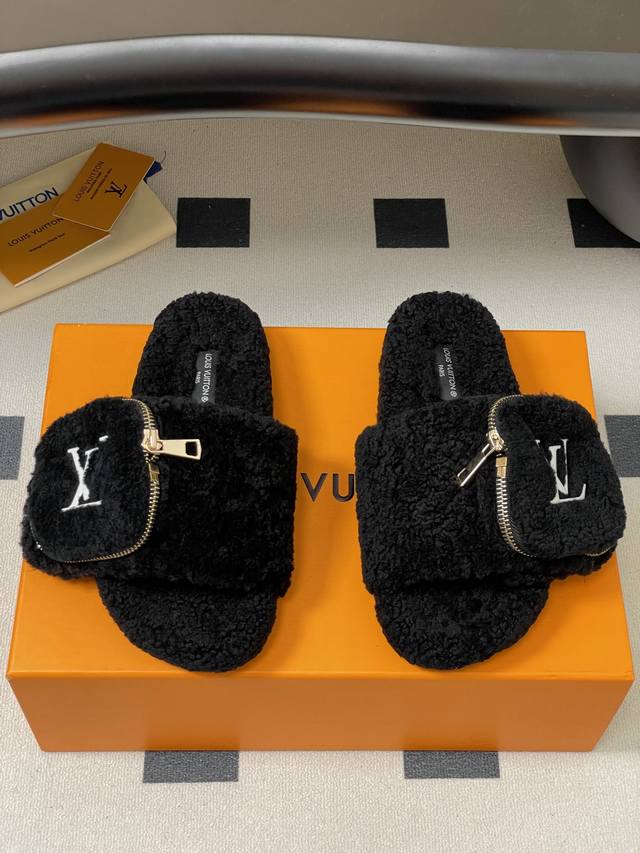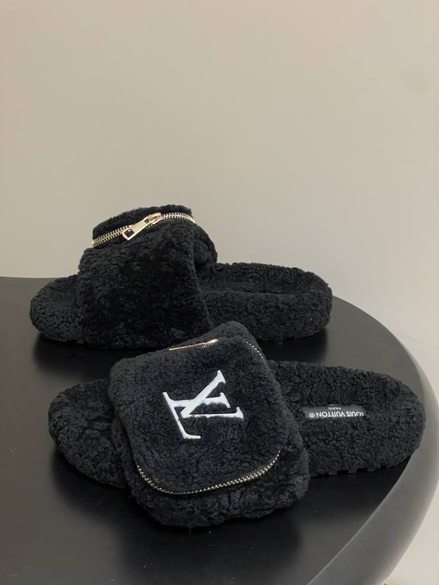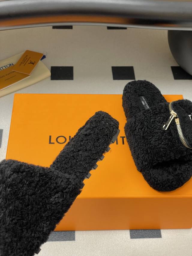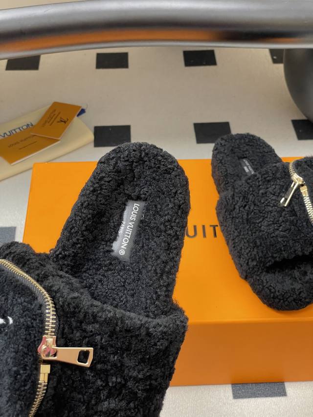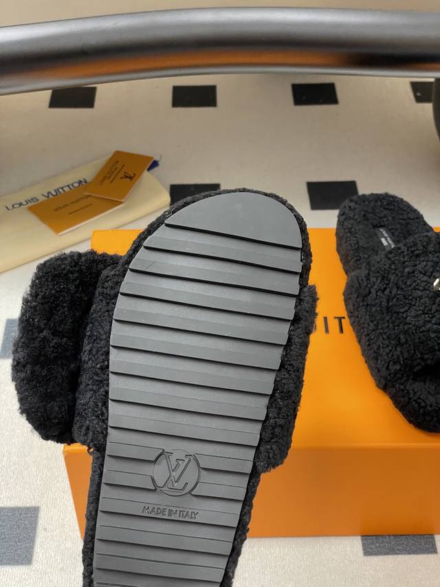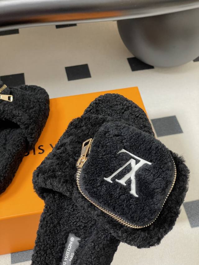2025秋冬新款Louis Vuitton 路易威登 Lv钱包羊毛拖鞋魔术贴懒人毛毛厚底拖鞋