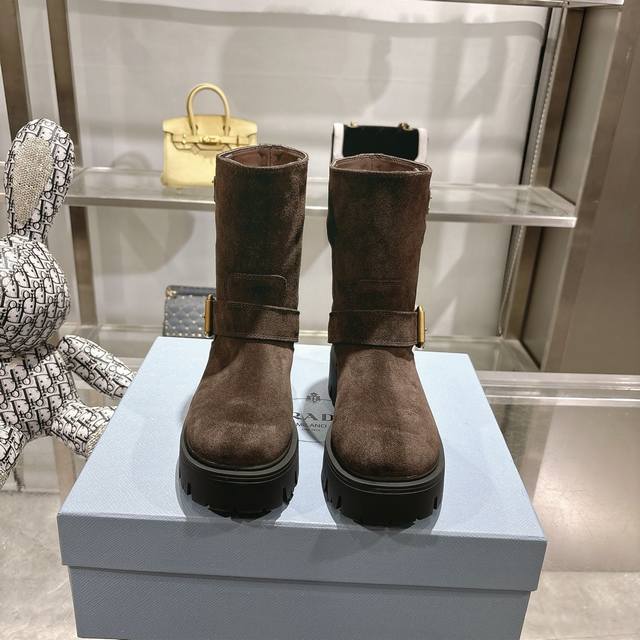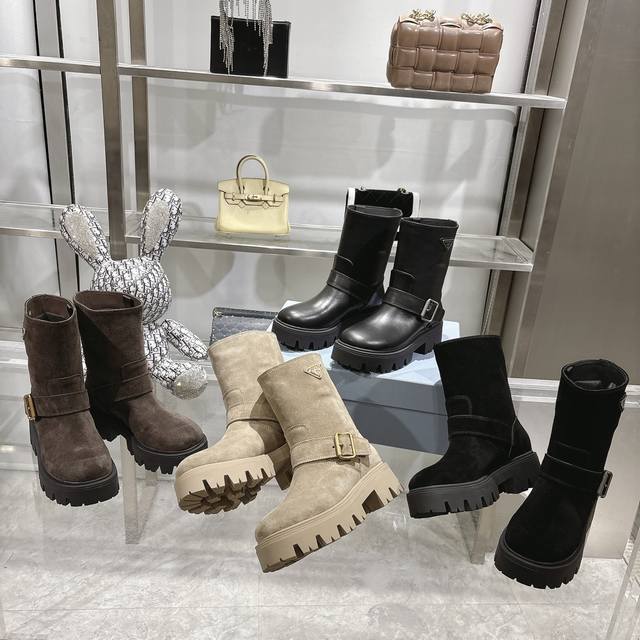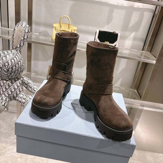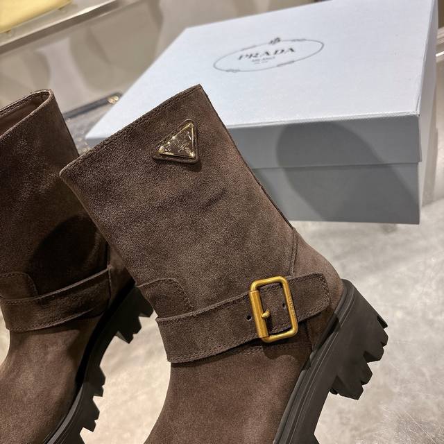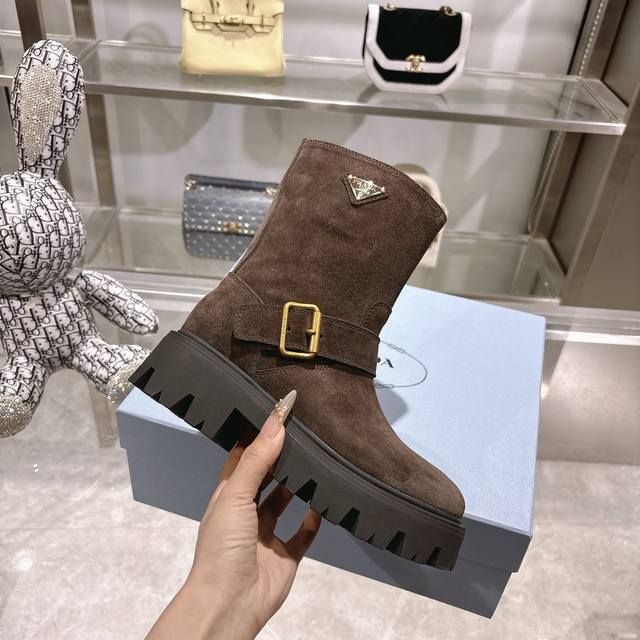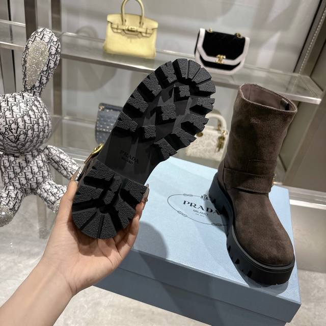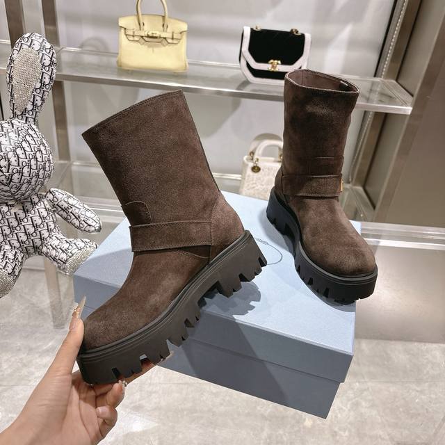 众多明星网红最爱,一脚蹬短靴,Prad最经典的三角标,英伦风复古搭配6厘米厚底设计,时尚中鼎显优雅气质。注塑三角字母Luogo工艺,Tpu防滑轻盈厚底,穿脱方便,今年非常爆,穿上休闲运动两不失误