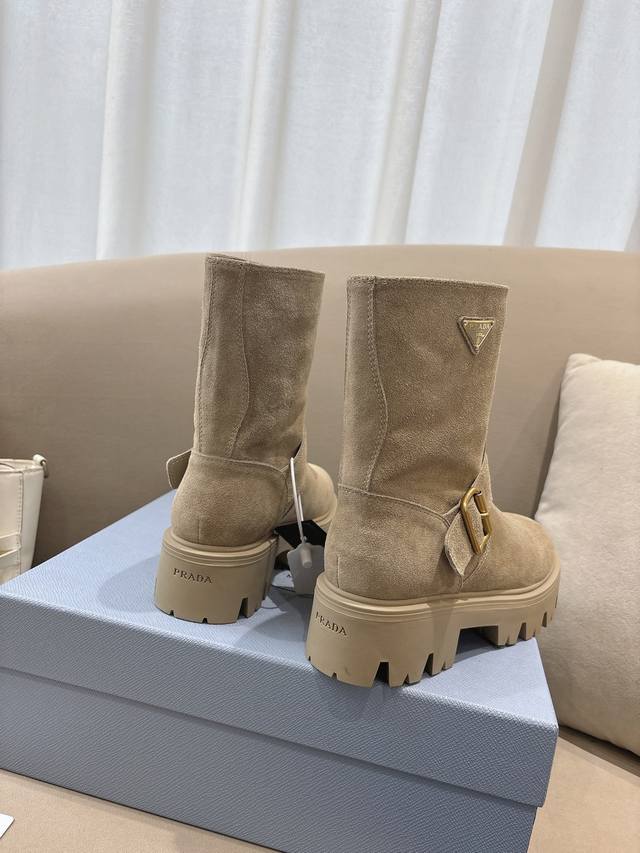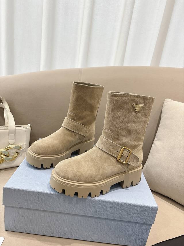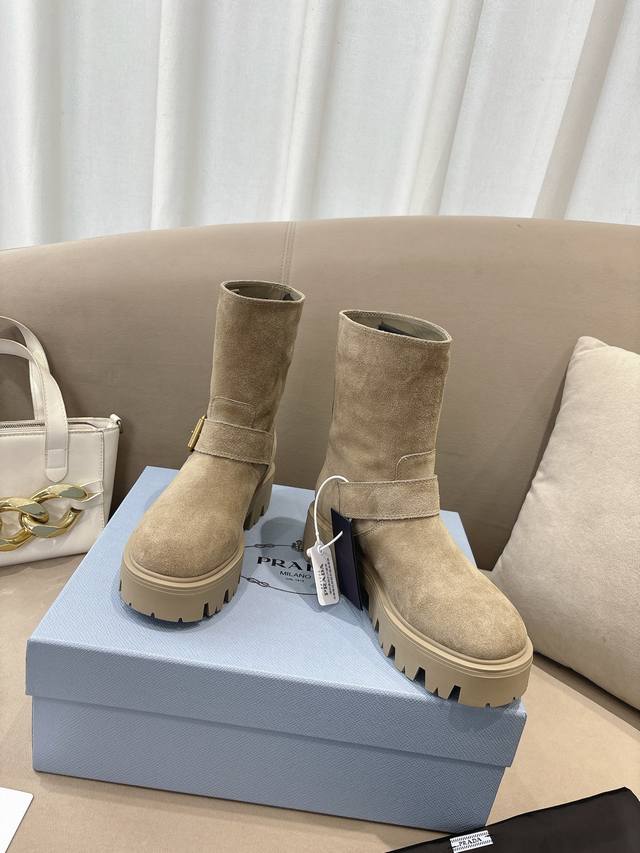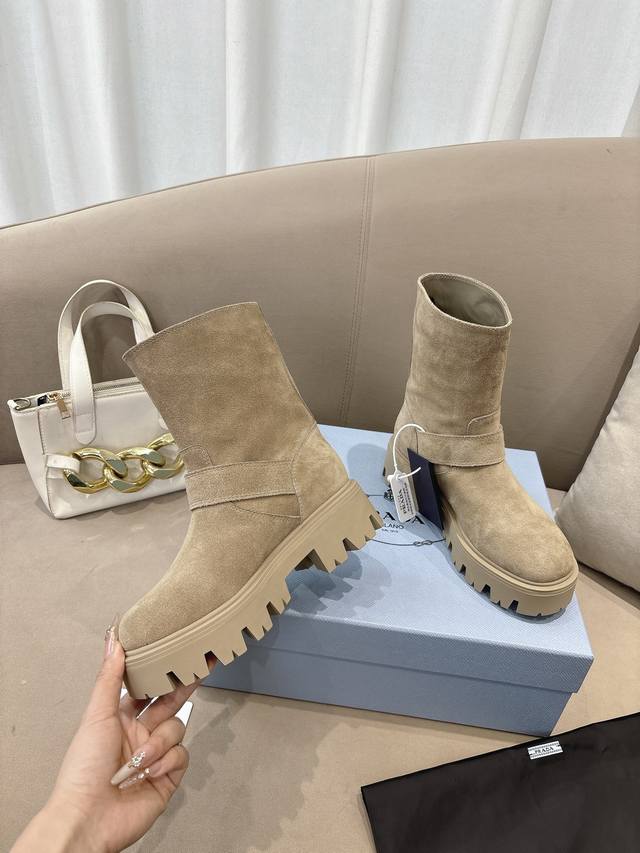 新款 一脚蹬女靴 选用优质的小牛皮或绒面材质,靴筒的剪裁贴合腿部线条,穿着舒适且时尚。鞋底具有良好的耐磨性和防滑性,确保穿着的安全性和舒适性 今年非常爆