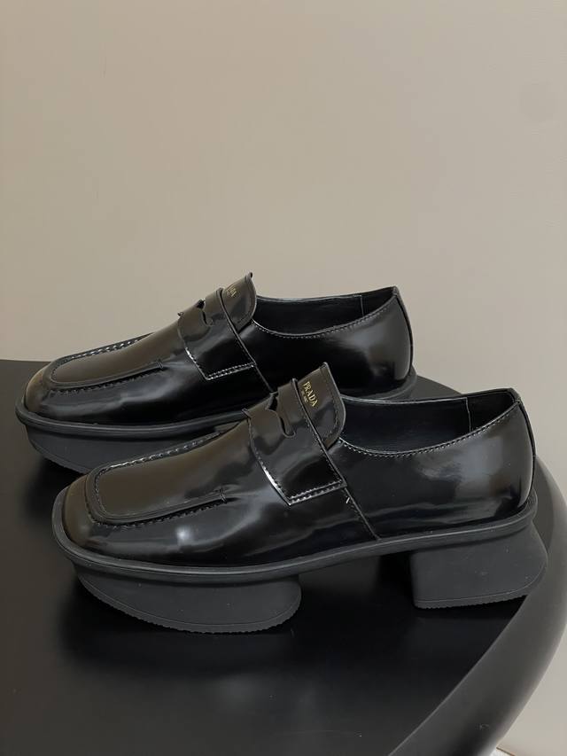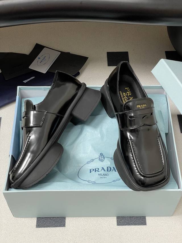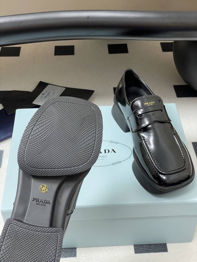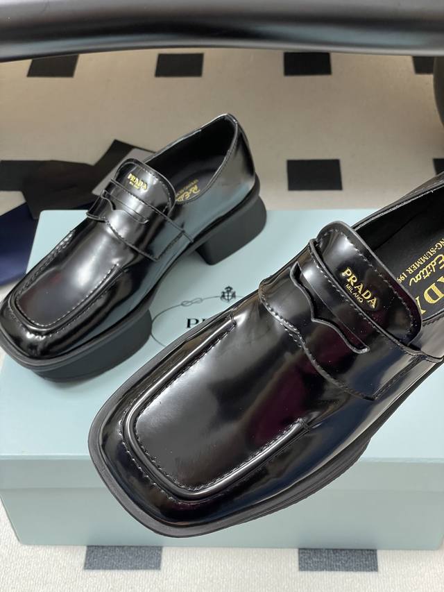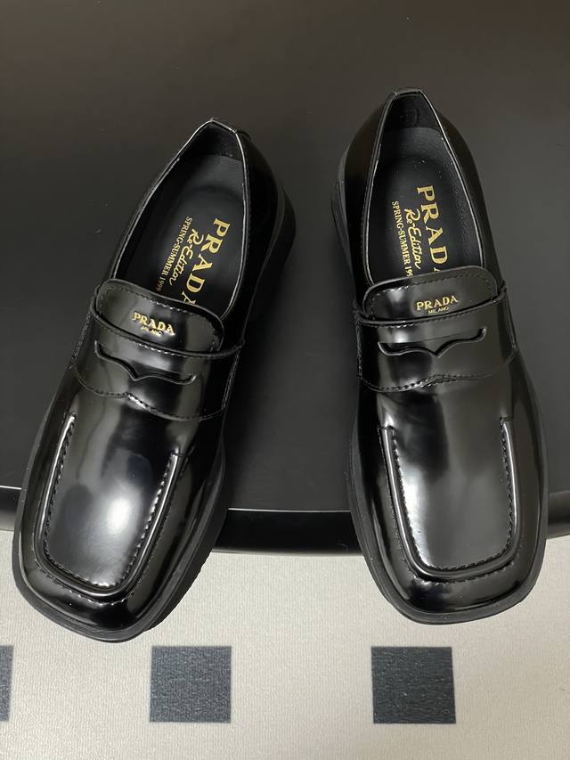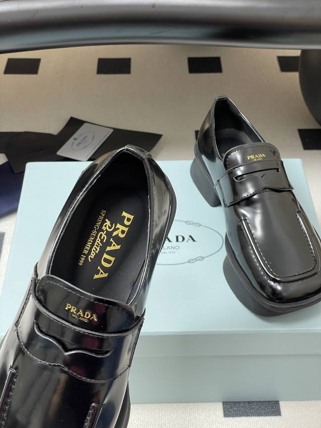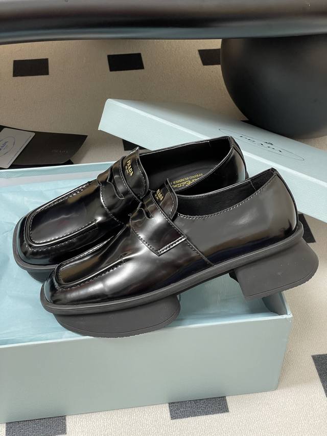 25Fw早秋新款Prada普拉达 Equal亮面牛皮乐福鞋
