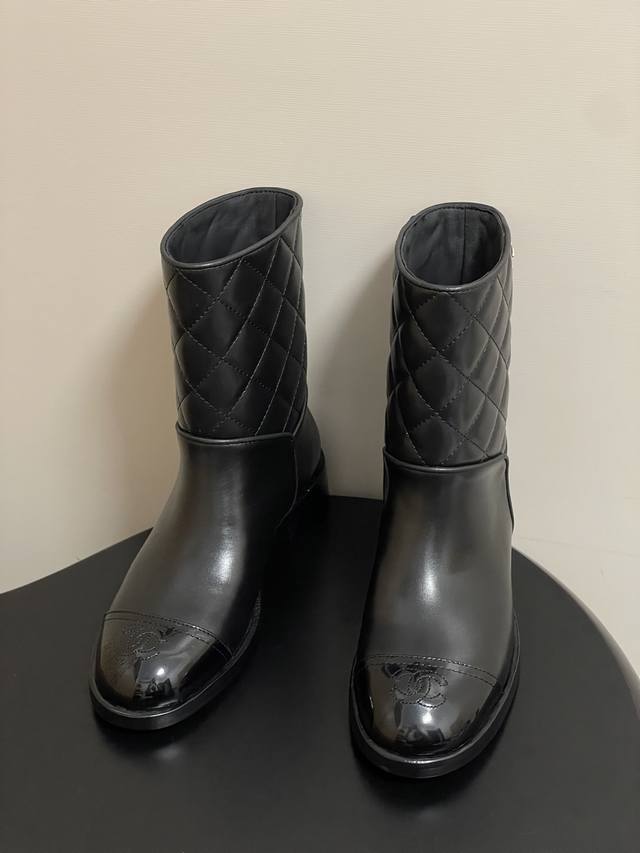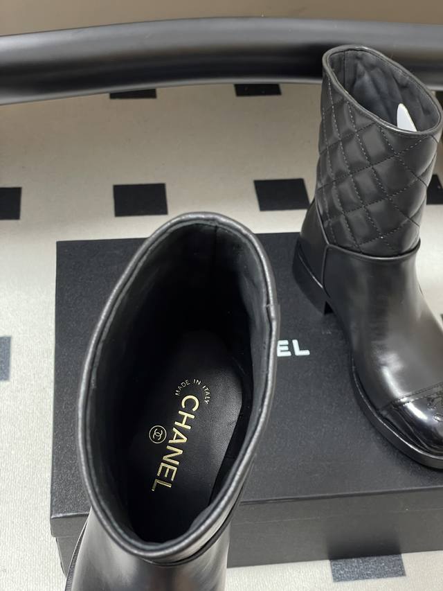 25Fw秋冬新款Chanel小香拼接菱格短靴经典双C扣短筒靴