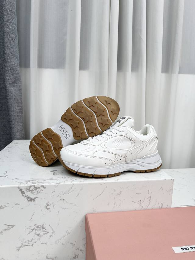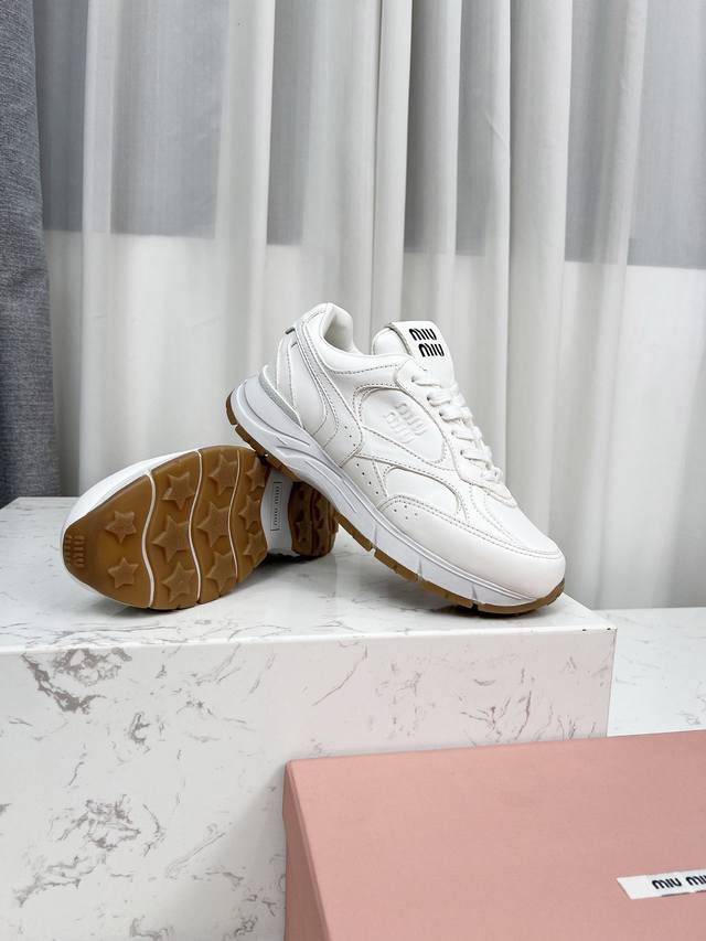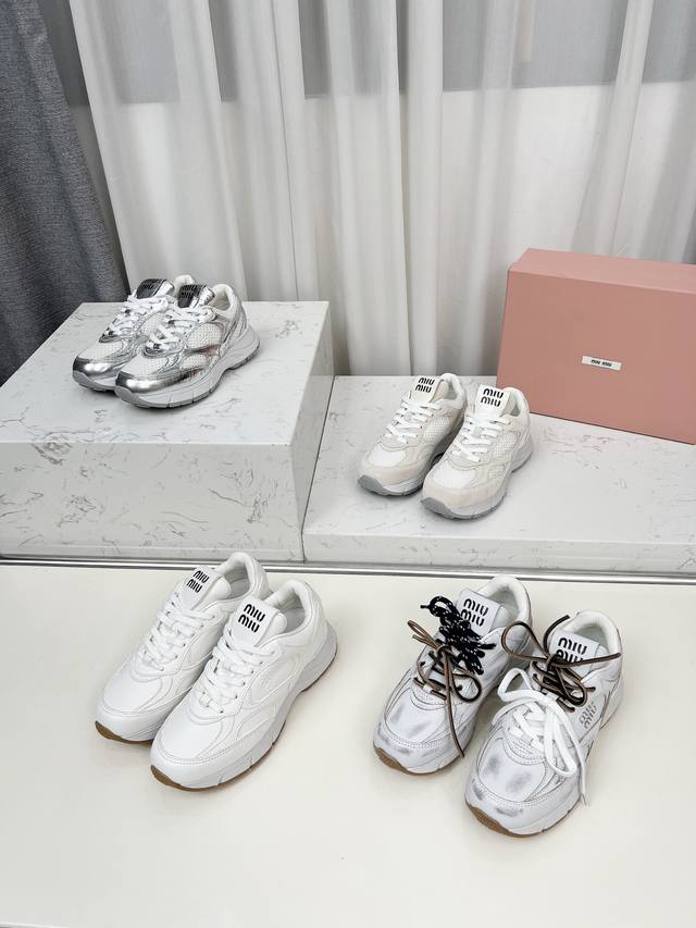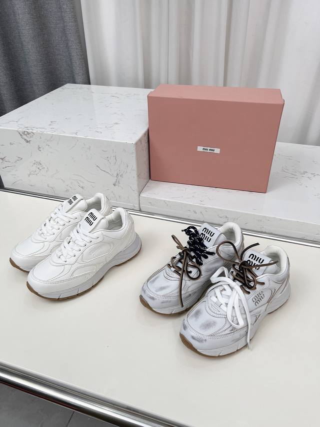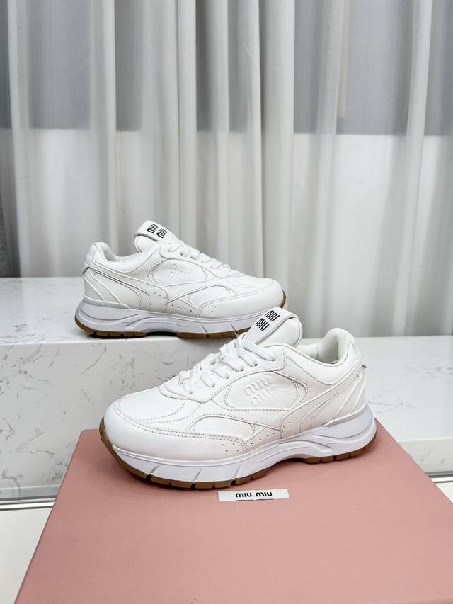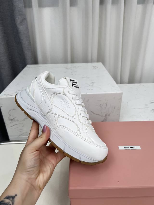 / 25Miumiu缪缪新款复古运动鞋!新品Miu Sneaker很有增高效果~小个子女生的福音!鞋面:牛绒 网、环保牛皮 ,羊皮内里 透气面料 原版Tpr防滑鞋底