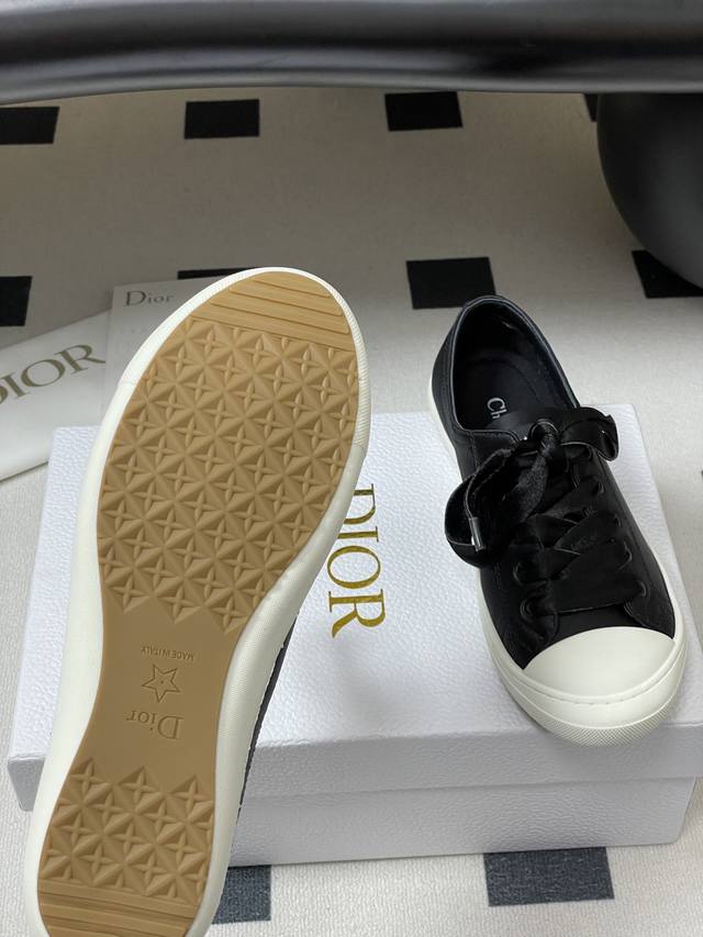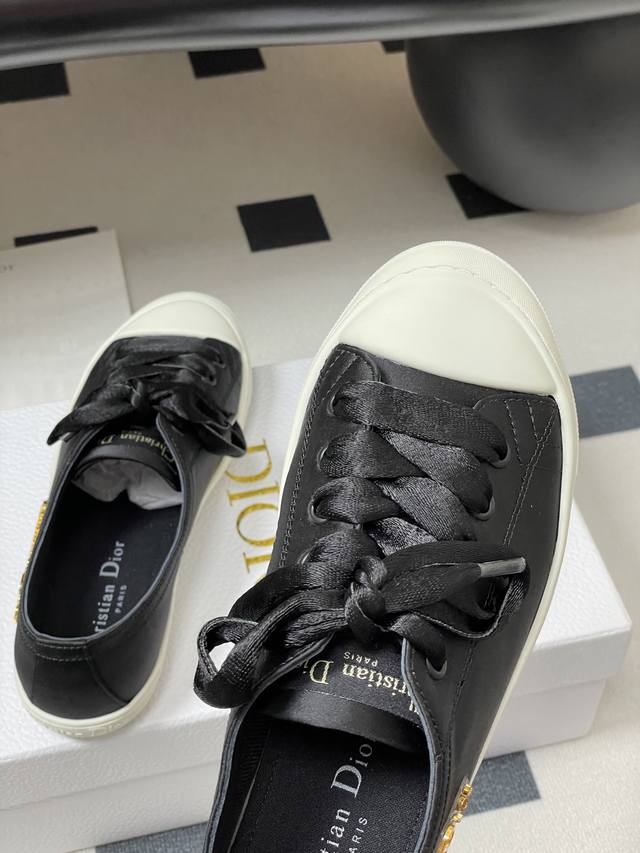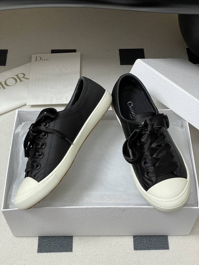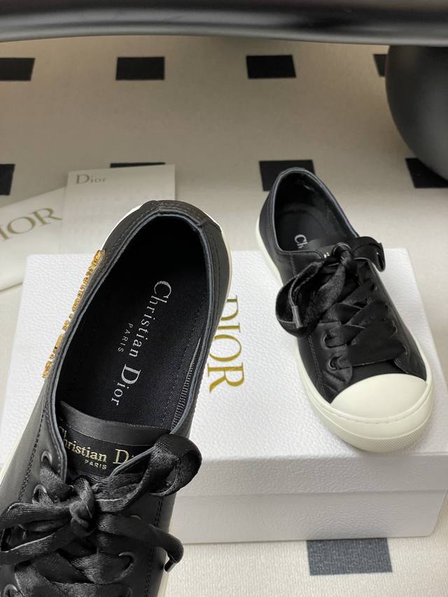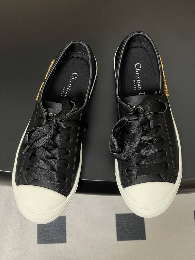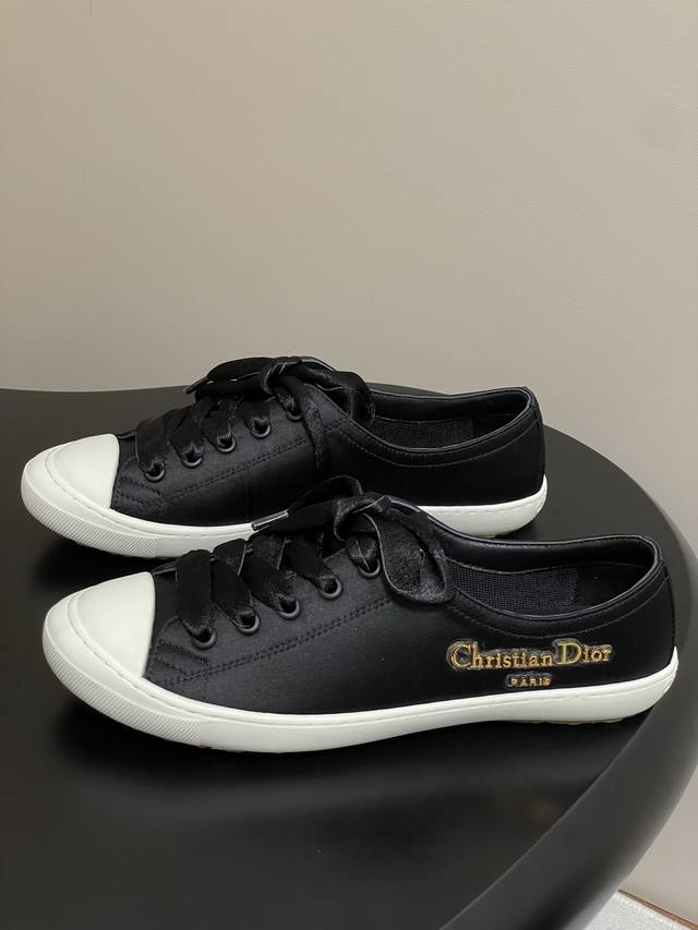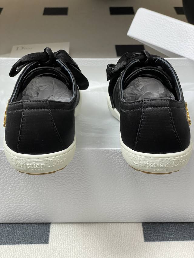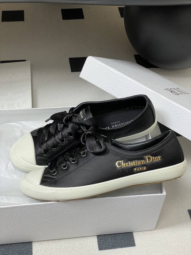 25Ss早秋新款Dior 迪奥D-Lucky真丝缎面休闲鞋系带麂皮Cd字母扣百搭小白鞋
