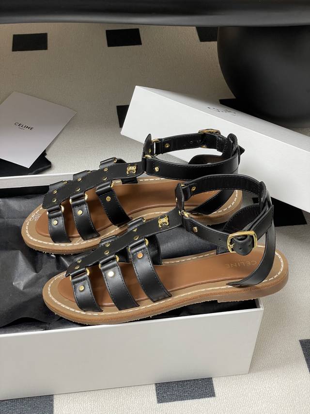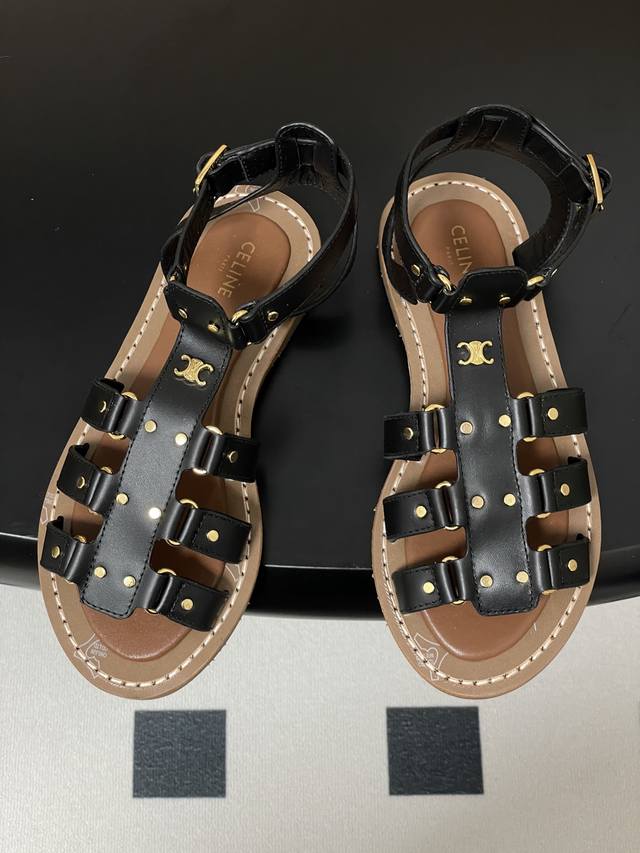 25Ss春夏新款 Celine赛琳 复古罗马平底凉鞋 设计搭配经典的 Logo 作为点缀整体视觉特别耐看又好搭配 鞋面:定制牛皮 开模五金配件 内里垫脚:羊皮