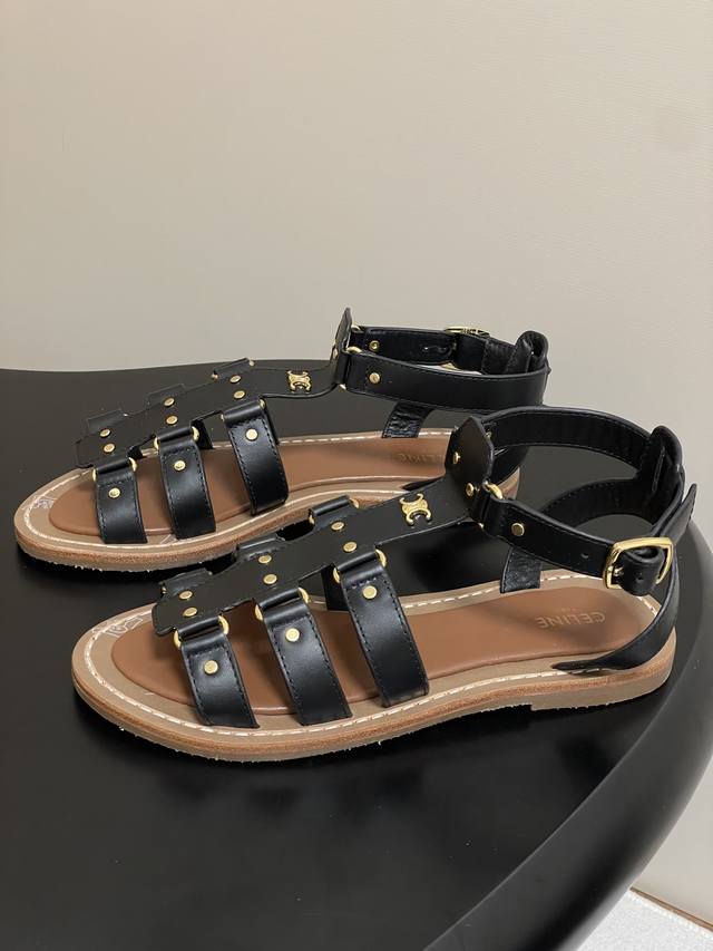 25Ss春夏新款 Celine赛琳 复古罗马平底凉鞋