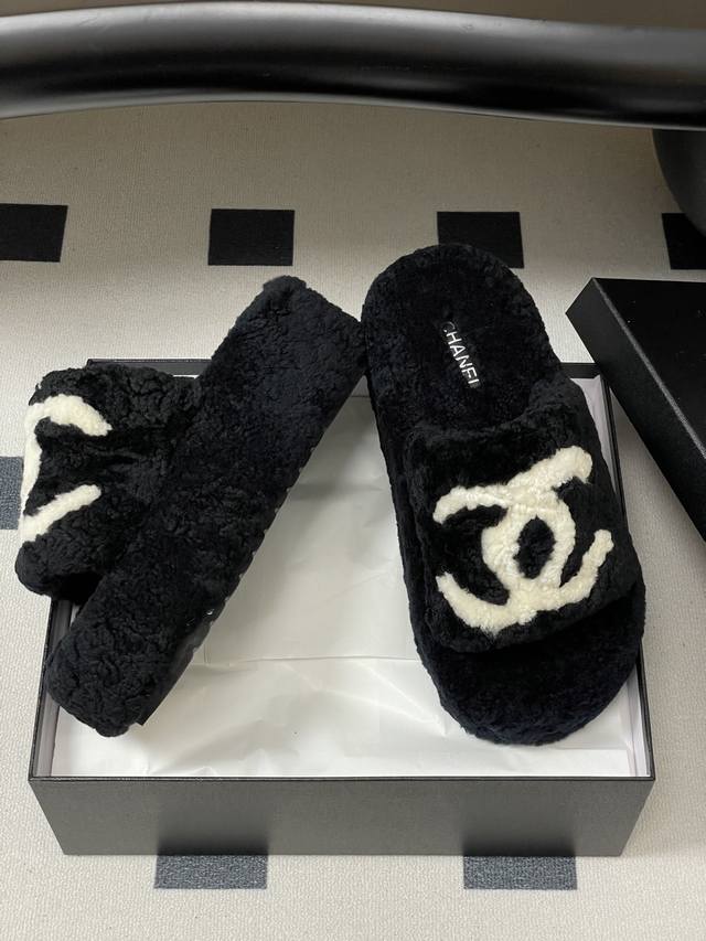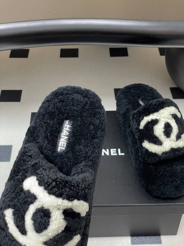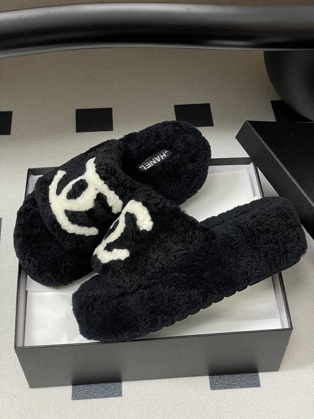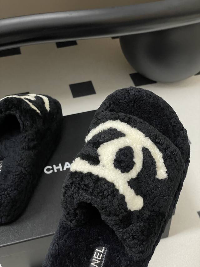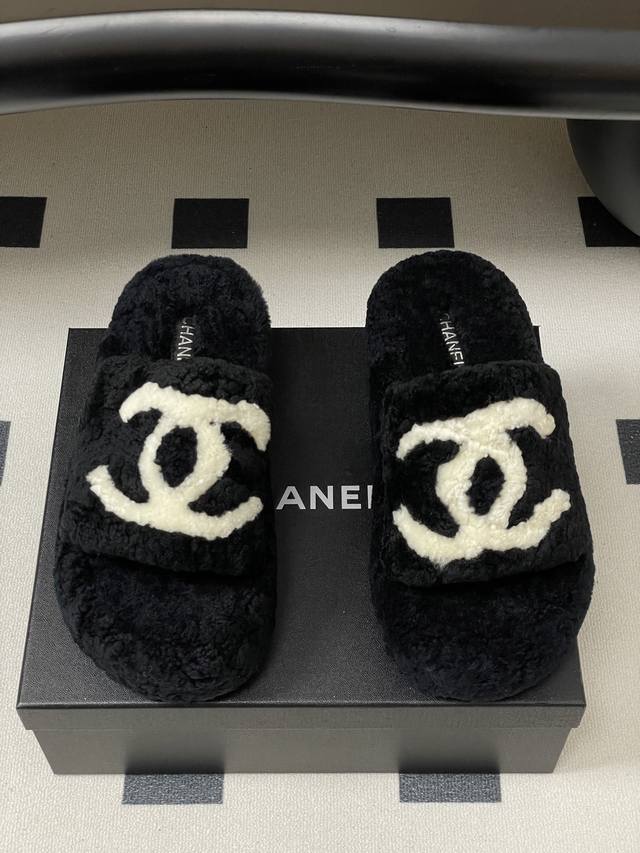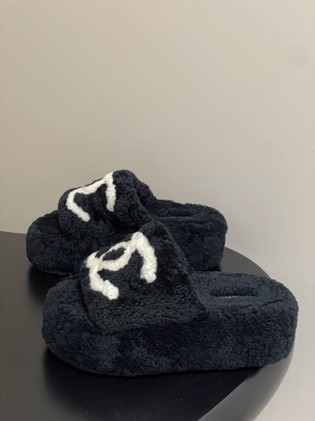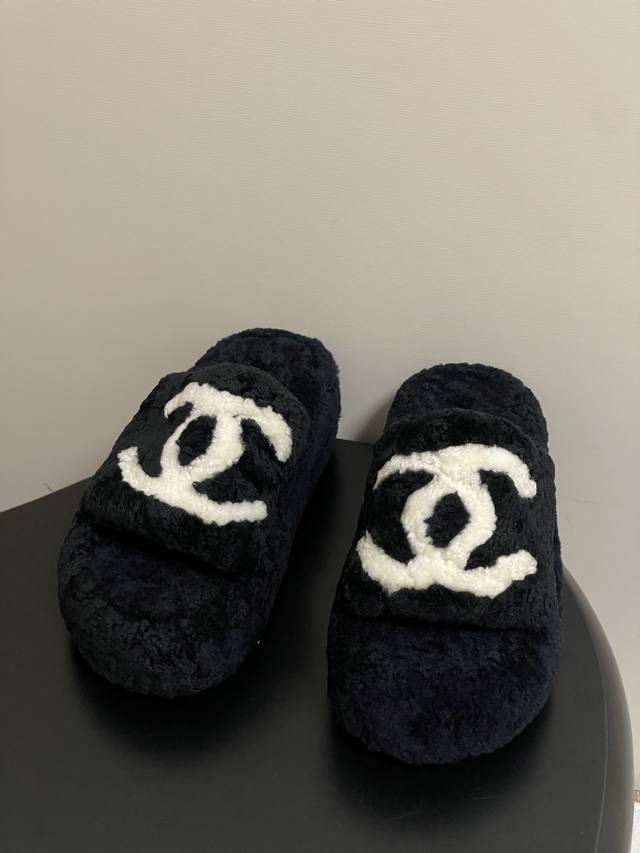 25Ss秋冬新款 Chanel 小香经典双C羊毛拖鞋厚底毛毛鞋穆勒毛拖鞋