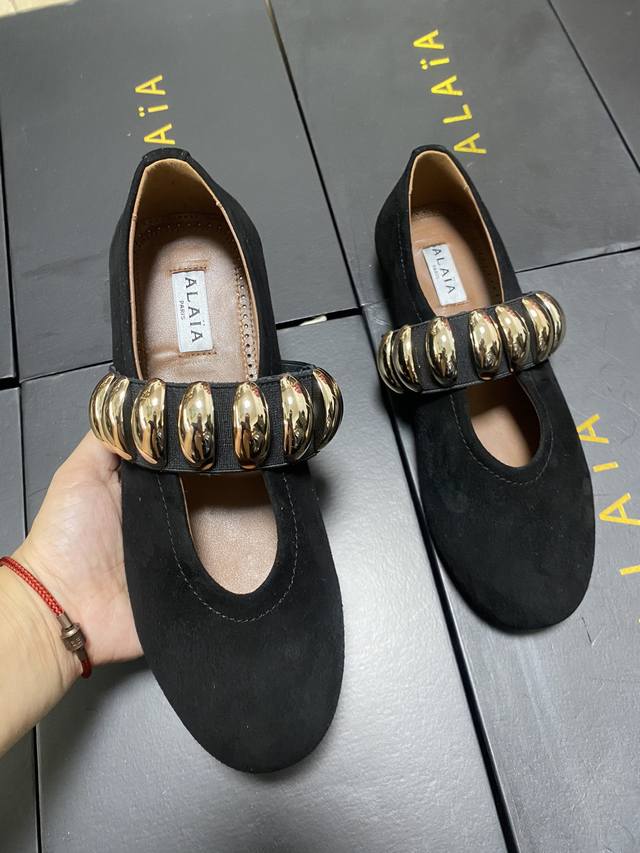 Alaia 走秀款平底芭蕾舞平底单鞋! 甜酷芭蕾风,人气超高的一款芭蕾舞鞋,浪漫又迷人舒适百搭。 原版订制羊京面料, 羊皮内里,私模橡胶防滑大底, 码数:35-