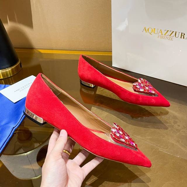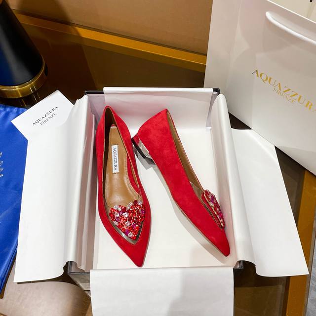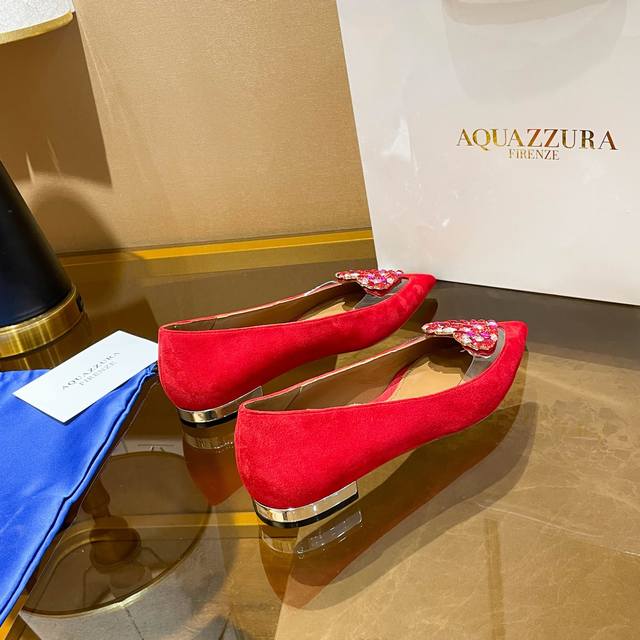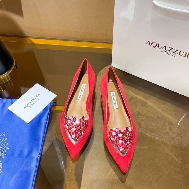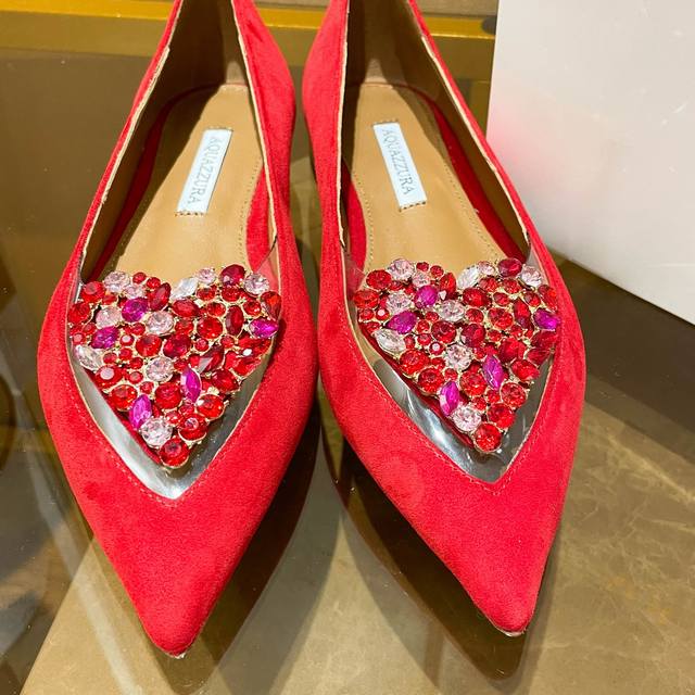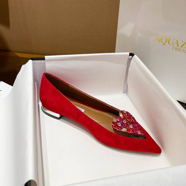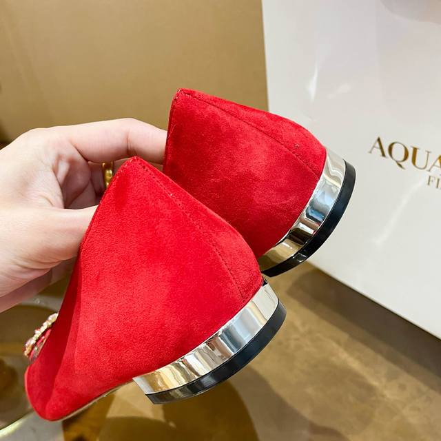 Aquazzura 新款 顶级版本 菠萝女士镂空平跟单鞋原版1比1开模五金扣,鞋跟!施华洛世奇水钻,闪耀光芒,