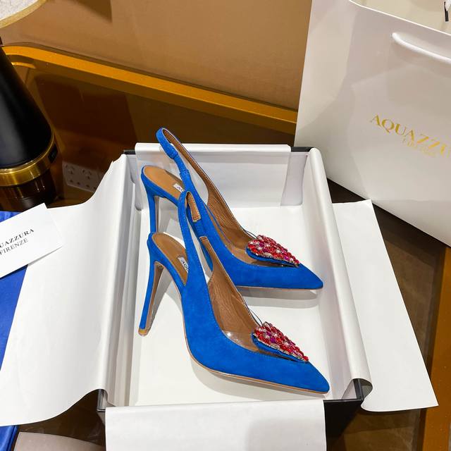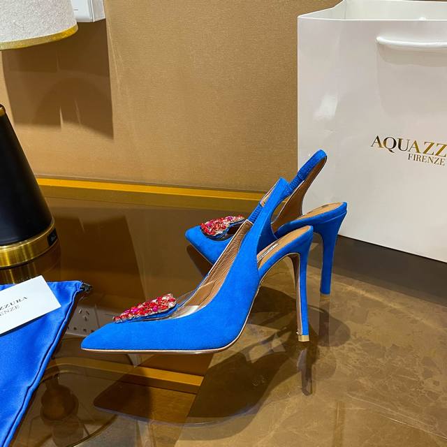 Aquazzura 新款 顶级版本 菠萝女士镂空高跟单鞋原版1比1开模五金扣,鞋跟!施华洛世奇水钻,闪耀光芒,