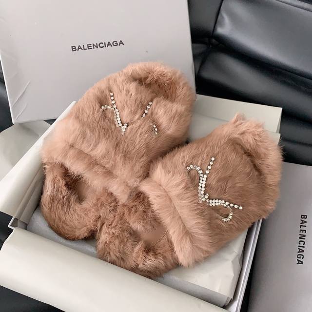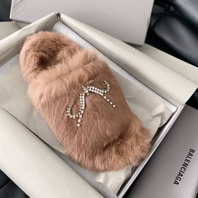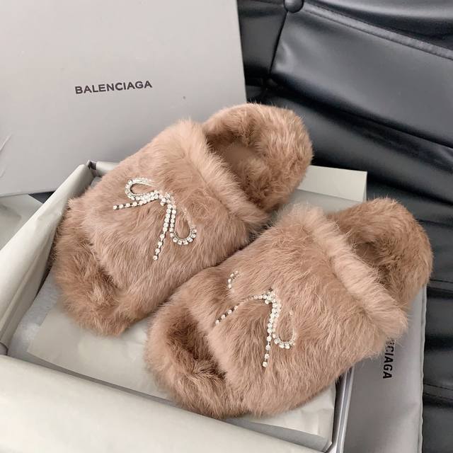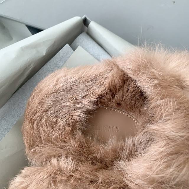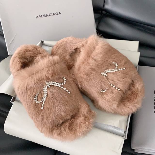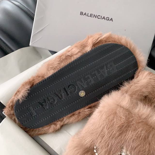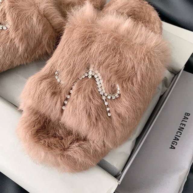 Balenciag*秋冬新款毛毛拖鞋秋冬必备经典百搭闭眼入,冬天谁能不爱毛毛拖呢,对版兔毛面料,私模防滑橡胶大底,码数:35-39# 40#订做不退换