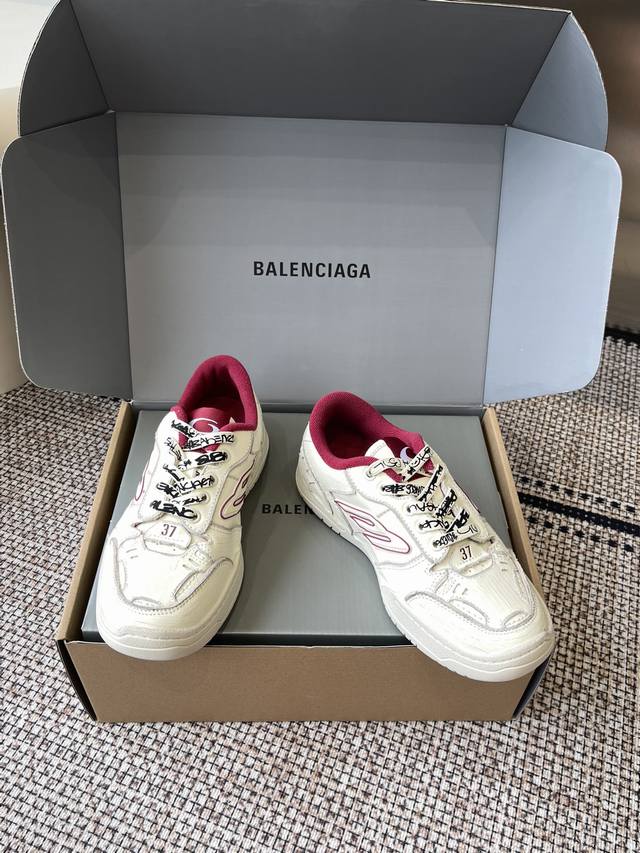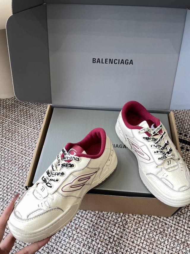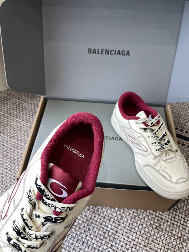 超多明星网红种草 它以经典鞋履为原型 侧面极具辨识度的巴黎家B标志 打造流线型轮廓 鞋面釆用不对称剪裁设计辅以毛边 满是做旧痕迹 磨损边缘外露缝线 细节处松脱的缝线以及车孔痕辸 刮擦痕辸与不对称设计营造出复古随性氛围 鞋带外途鸦式品牌标识与弯曲鞋头结构 自带Diy的不羁与个性 彰显独具一格的手工质感 再造休闲美学典范 面料原版进口头层牛皮 内里短绒布 原版开模橡胶组合大底码数:35-45 女40 男45定做
