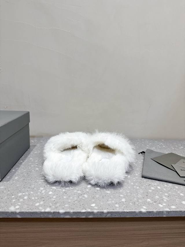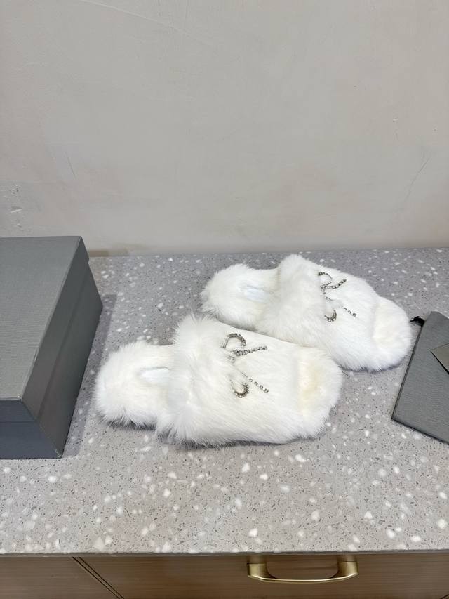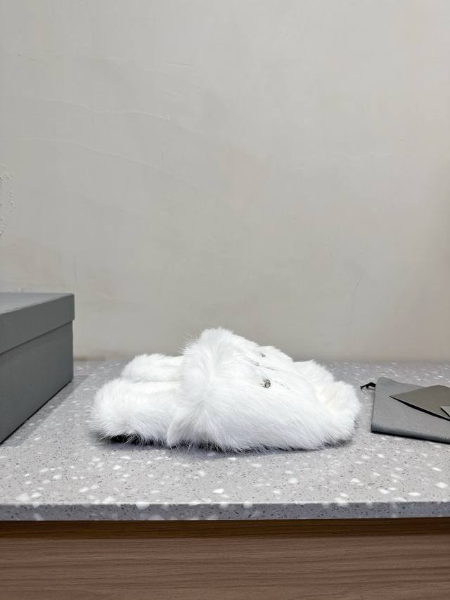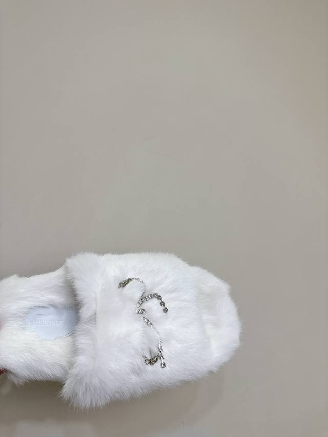 Balenciaga 巴黎世家 25Ss秋冬新款 水钻蝴蝶结 毛拖 鞋面水钻蝴蝶结工艺! 高级感满满当当! 上脚特别漂亮 面料:采用原版进口貂毛 非常柔软舒适