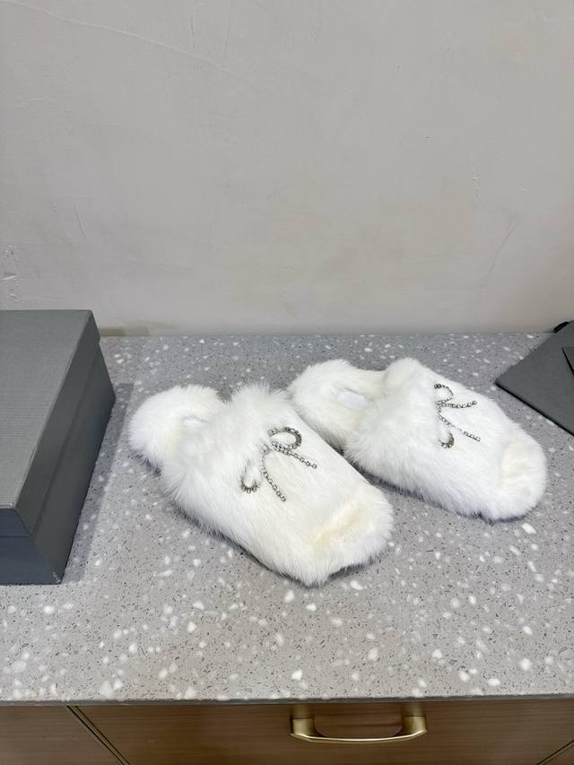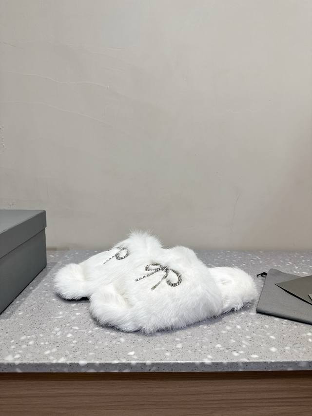 / Balenciaga 巴黎世家 25Ss秋冬新款 水钻蝴蝶结 毛拖 鞋面水钻蝴蝶结工艺! 高级感满满当当! 上脚特别漂亮 面料:采用原版进口貂毛 非常柔软舒适