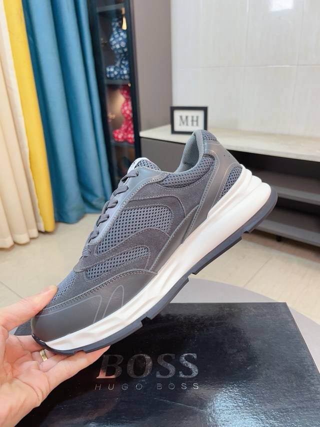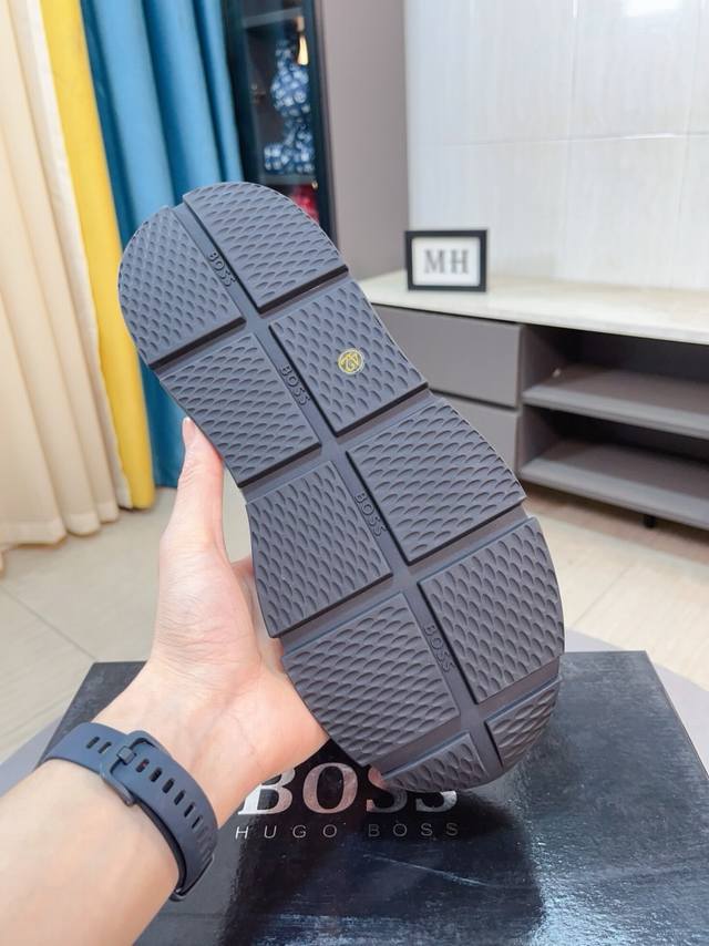 / Boss 以经典的设计成为永不落幕的时尚宠儿,经典的休闲造型。鞋面采用顶级反绒皮搭配防水布 品牌Logo点缀 彰显品牌魅力;头层真皮里 品牌专用大底,耐磨,轻便