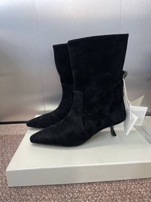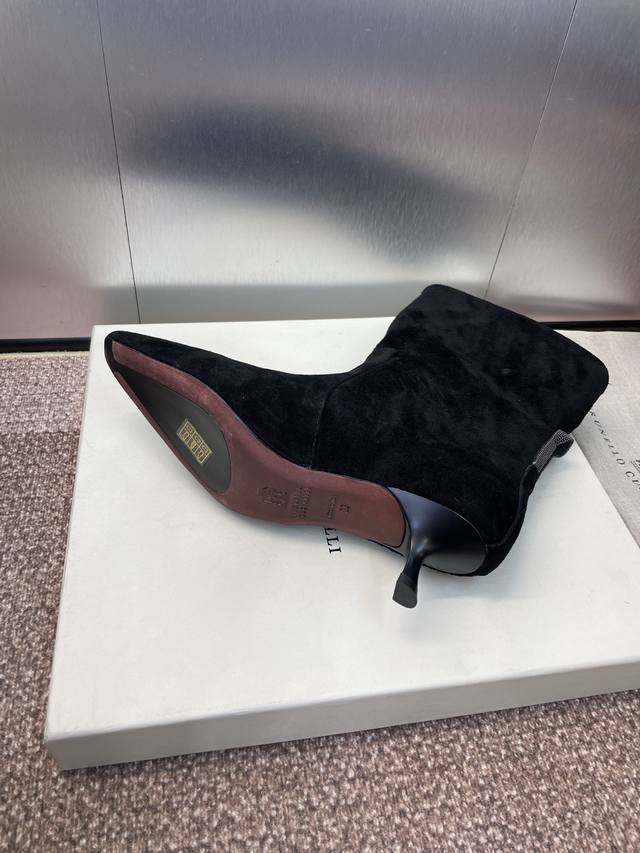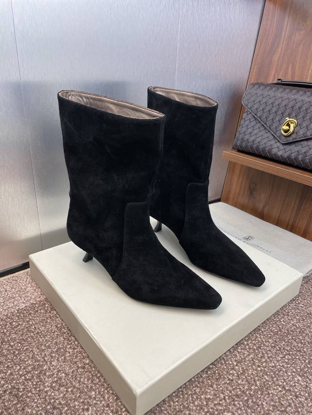 / Brunello Cucineli 布鲁内诺库奇内利2025秋冬新款女短靴 Bc 低跟尖头机车骑士马丁靴 材质:鞋面进口羊猄麂皮+水染羊皮内里+意大利注塑真皮大