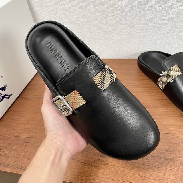 Burberry 新款男士格纹皮革 Urchin 半拖