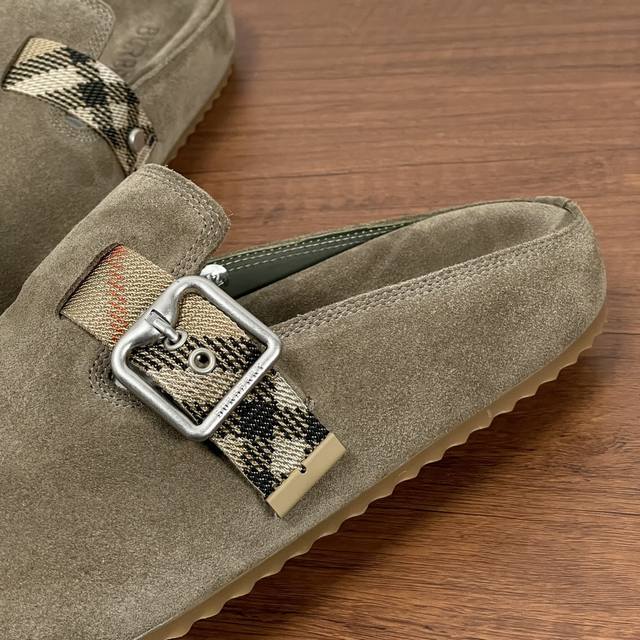 Burberry 新款男士格纹皮革 Urchin 半拖