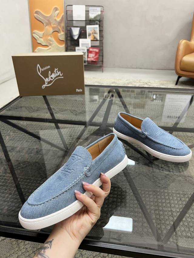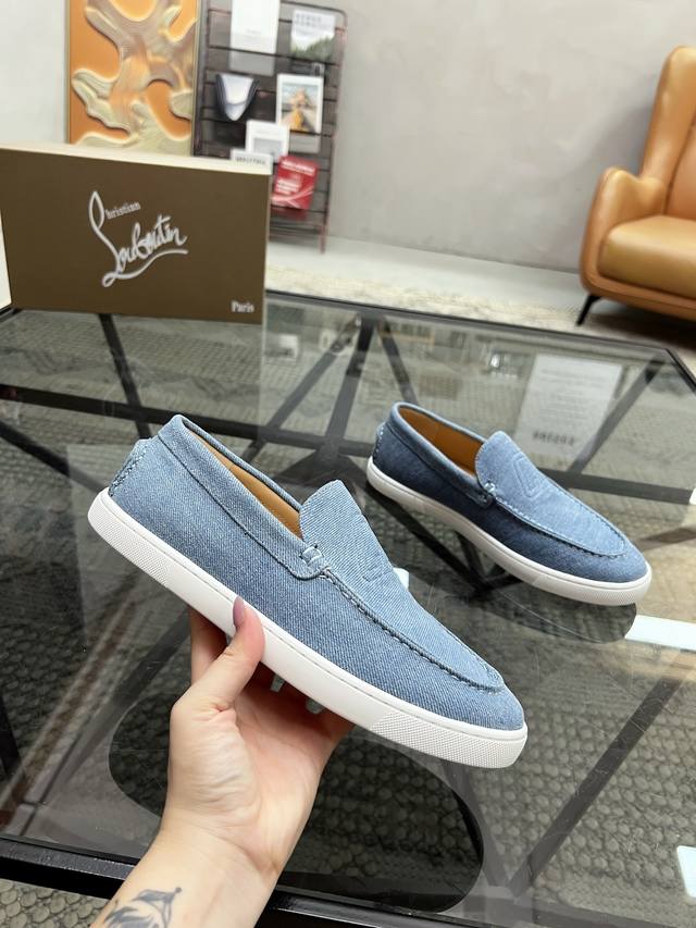 C 顶级代购 Cl 炸街男神爆款套脚休闲板鞋专柜新品同步,鞋面意大利进口牛仔布面料,高品质拼接工艺经典大方版面男士气质,柔软舒适里垫,鞋底:原厂特供原版底,独家