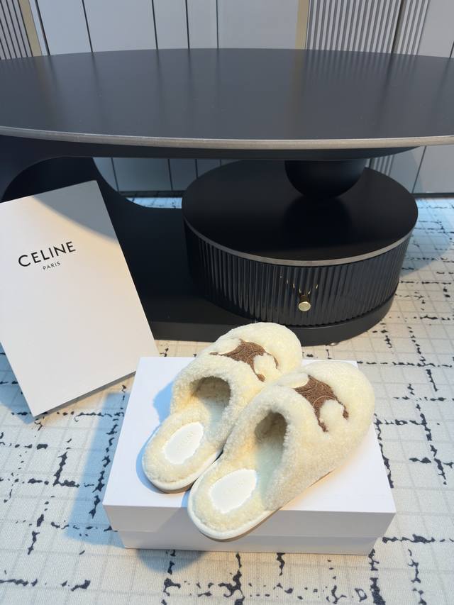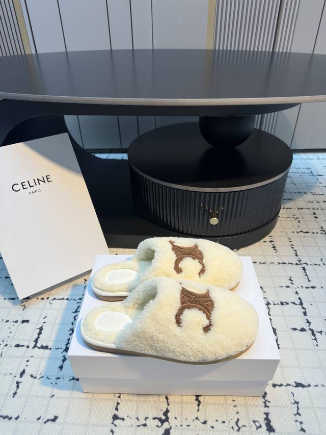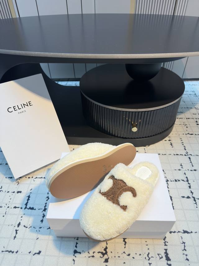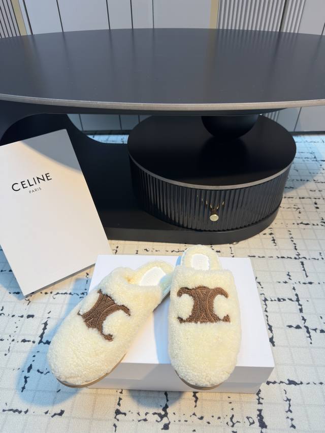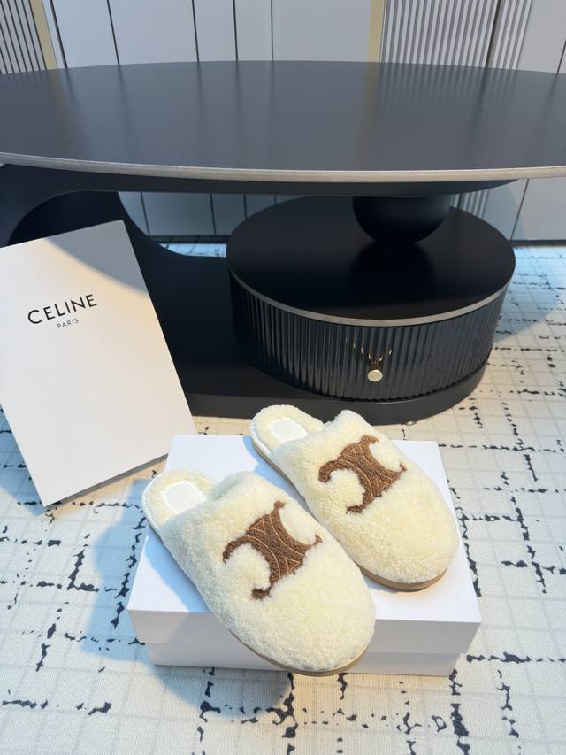 Celin*塞琳 25Ss 新品 一脚蹬羊毛拖鞋