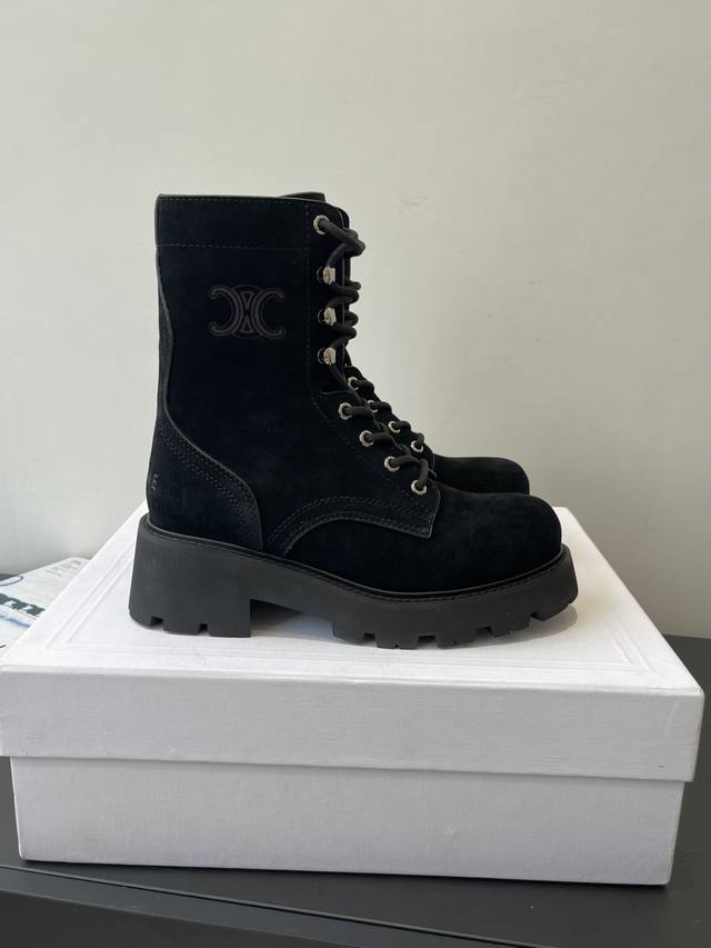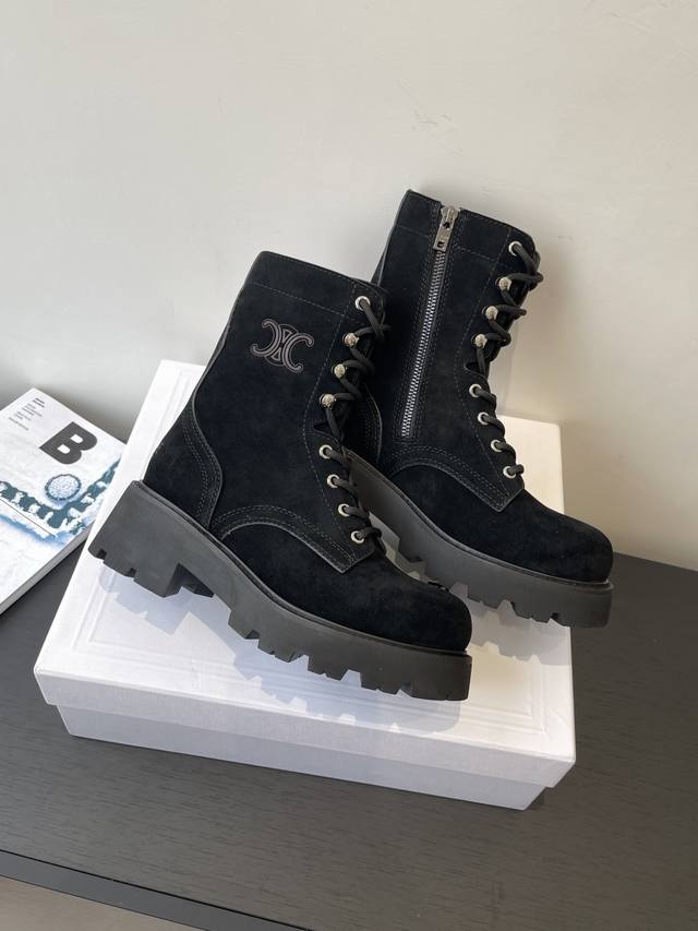 / Celine思琳 秋冬最新走秀款 马丁靴 超多明星网红上脚 无敌显瘦 上脚超级好看百搭 进口意大利小牛皮 皮质柔软 原版定制五金扣 鞋底厚5Cm左右 增高显腿细