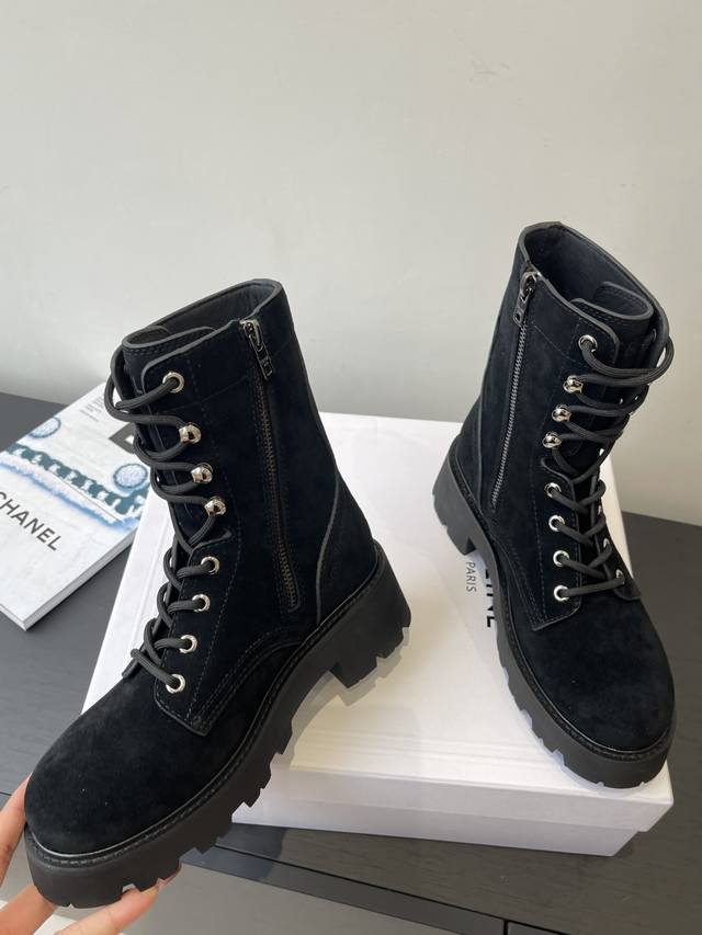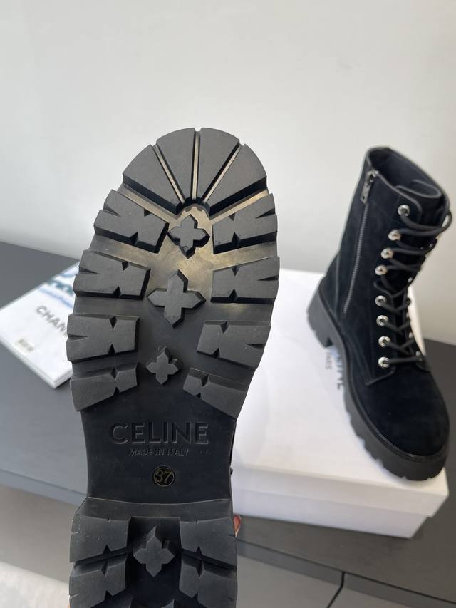Celine思琳 秋冬最新走秀款 马丁靴 超多明星网红上脚 无敌显瘦 上脚超级好看百搭 进口意大利小牛皮 皮质柔软 原版定制五金扣 鞋底厚5Cm左右 增高显腿细