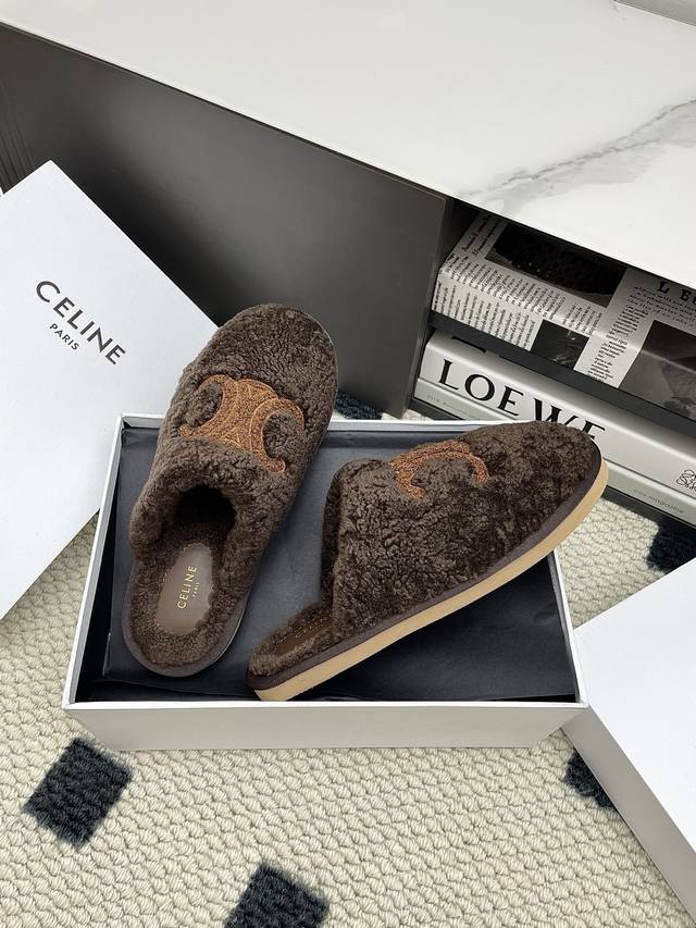 Celine 塞林2025秋冬新款羊毛拖鞋