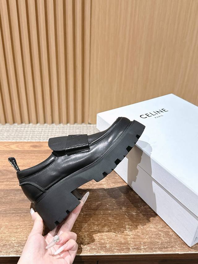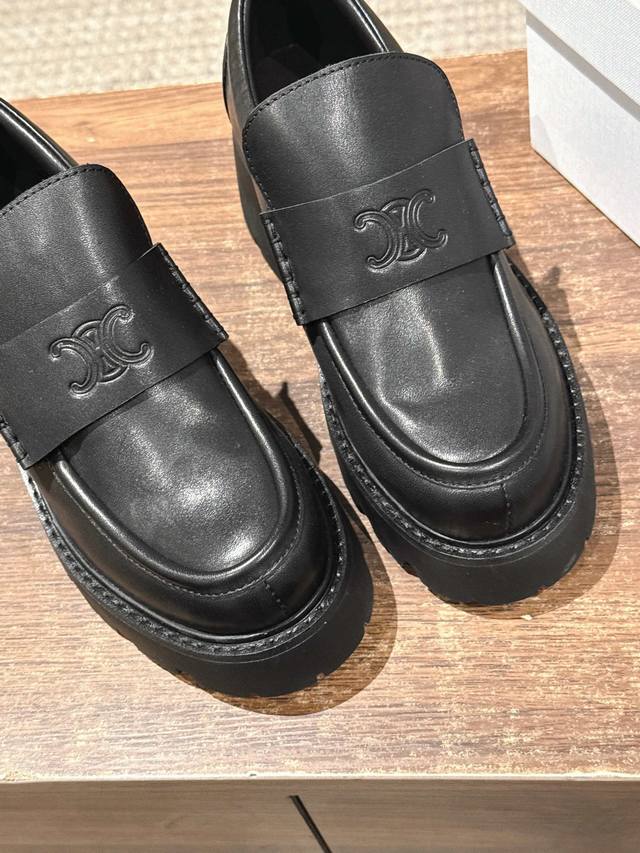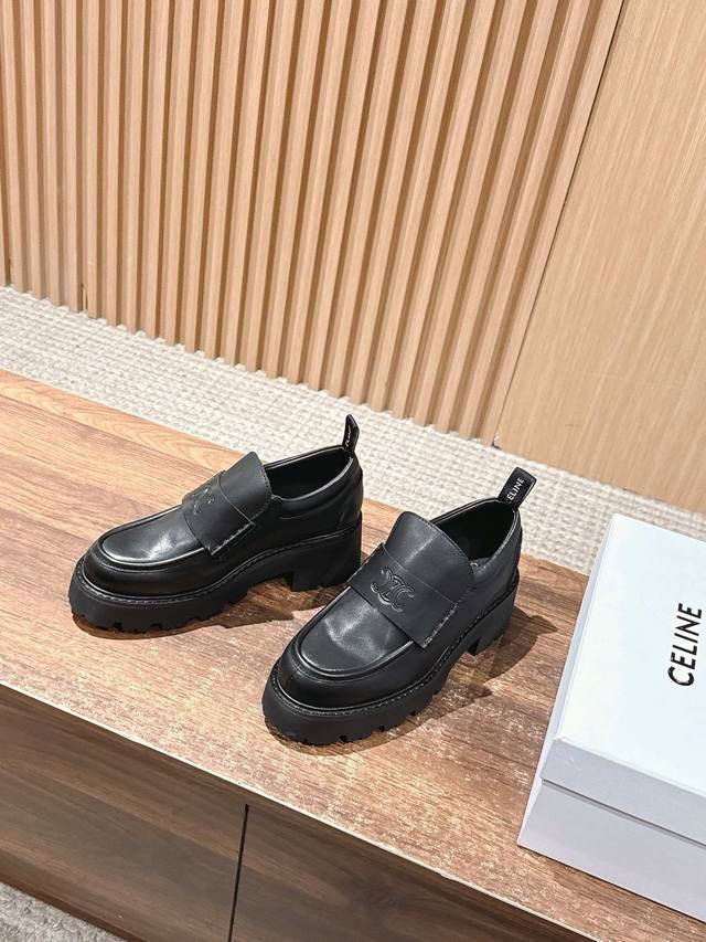 Celine 思琳秋冬新款厚底乐福鞋 经典凯旋门Logo装饰 简约高级 轻松增高5Cm 牛皮 麂皮材质 Size:35-39 40 41定制不退换