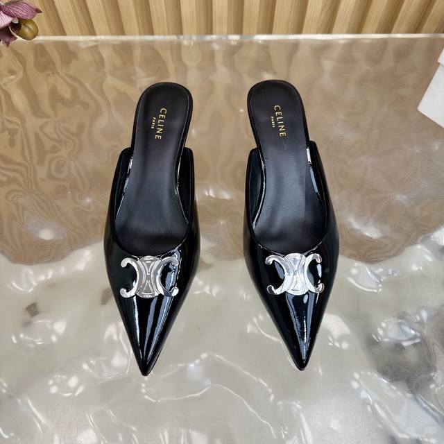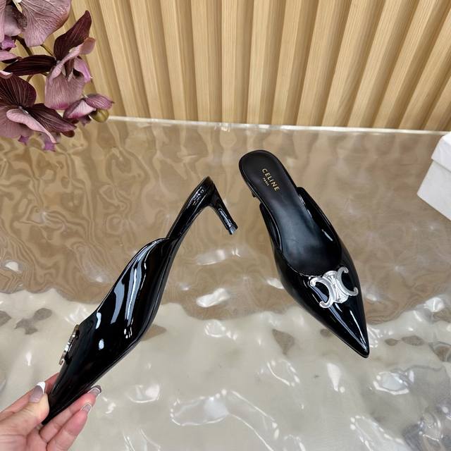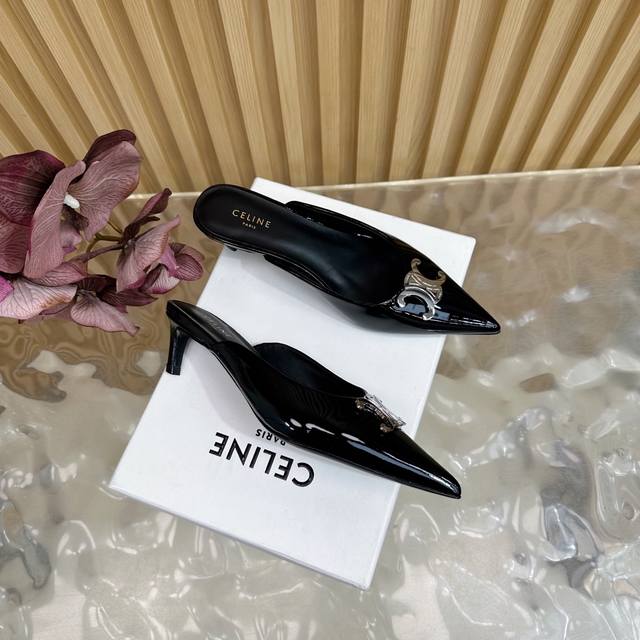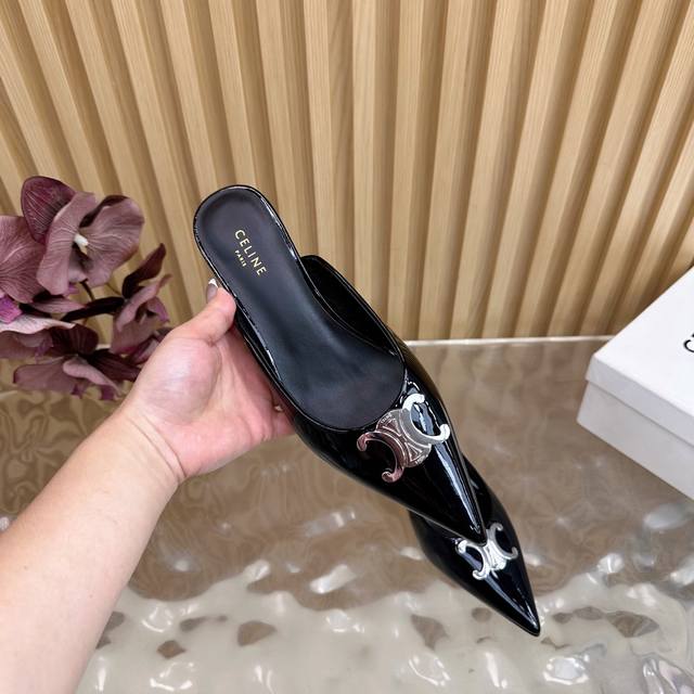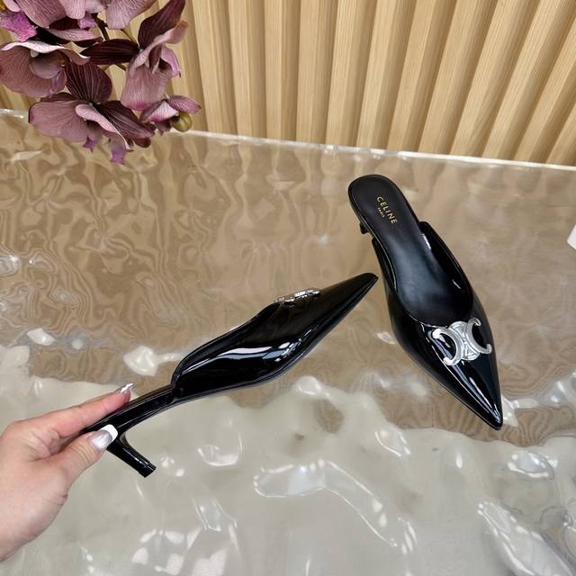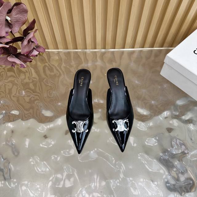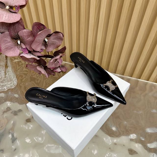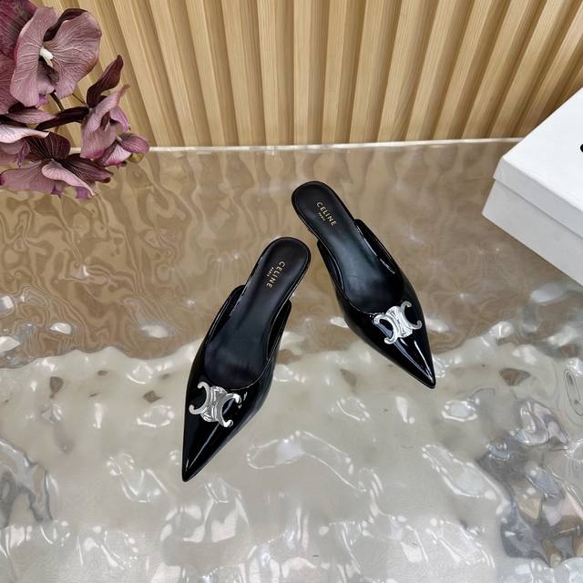Celine 赛琳经典凯旋门尖头猫跟拖鞋