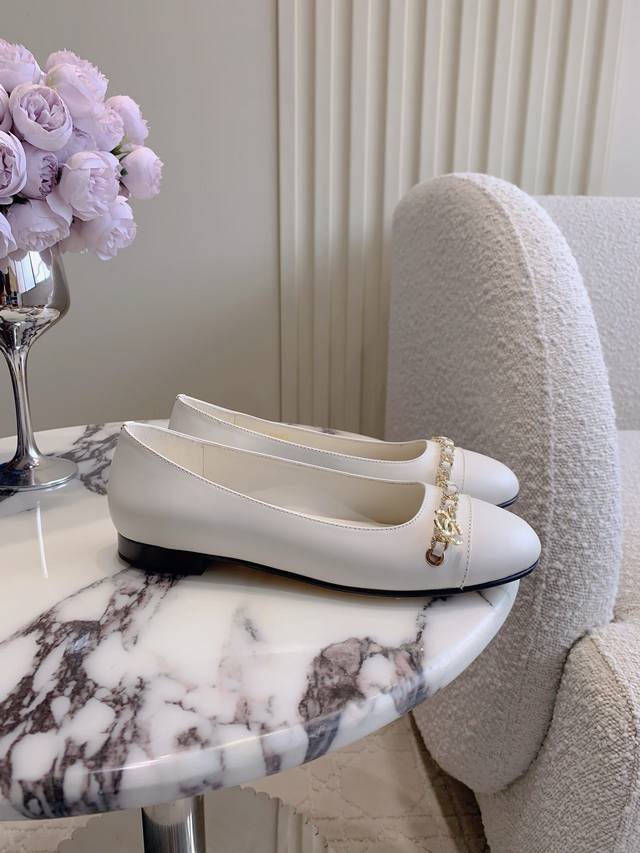 Chane*新款水钻链条平底单鞋 经典不过时的鞋型 搭配双C开模Logo精致的高级感 学院风百搭又减龄 各种穿搭都能驾驭