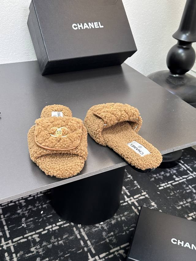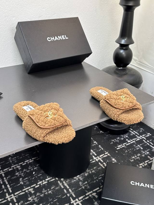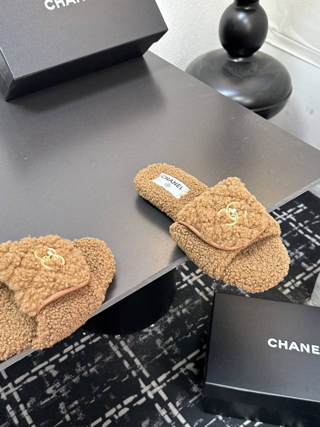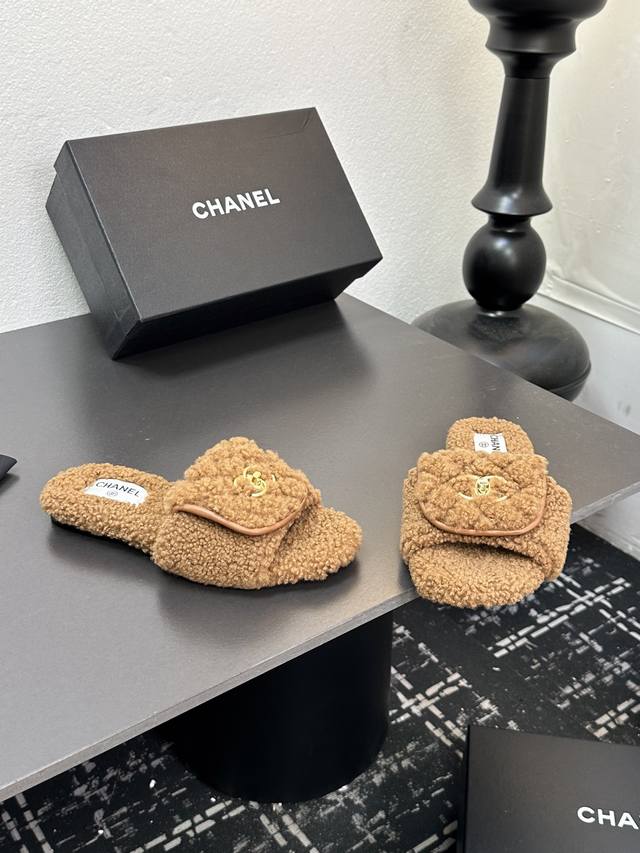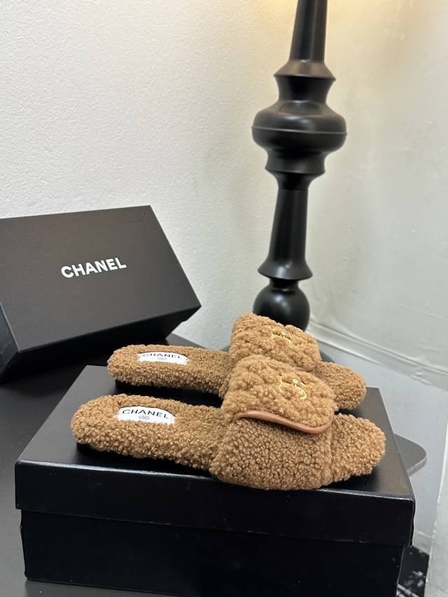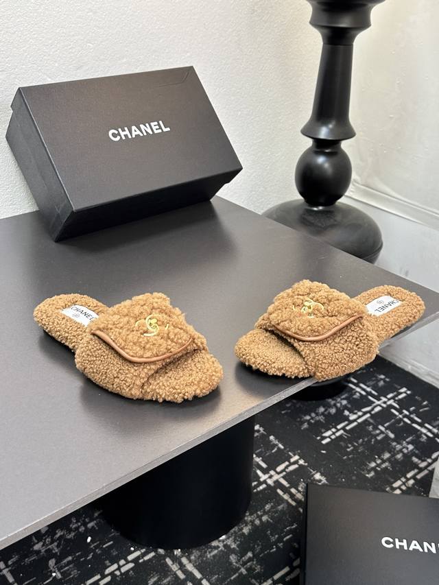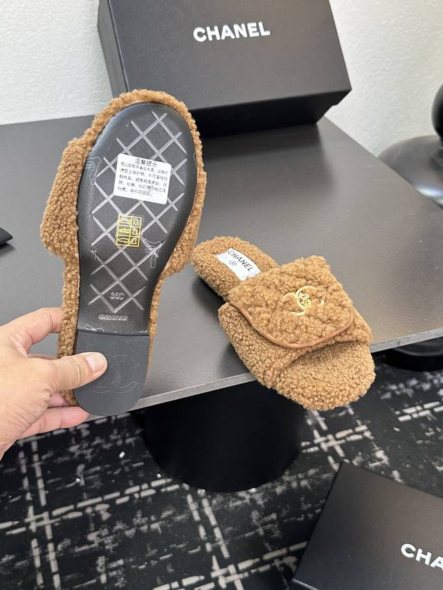/ Chanel小香风香奈儿 2025新款秋冬懒羊羊真羊毛懒人拖鞋 菱格电绣小香毛拖 面料: 澳洲进口羊羔毛 內里: 澳洲进口羊羔毛 大底:原版真皮大底 码数:35