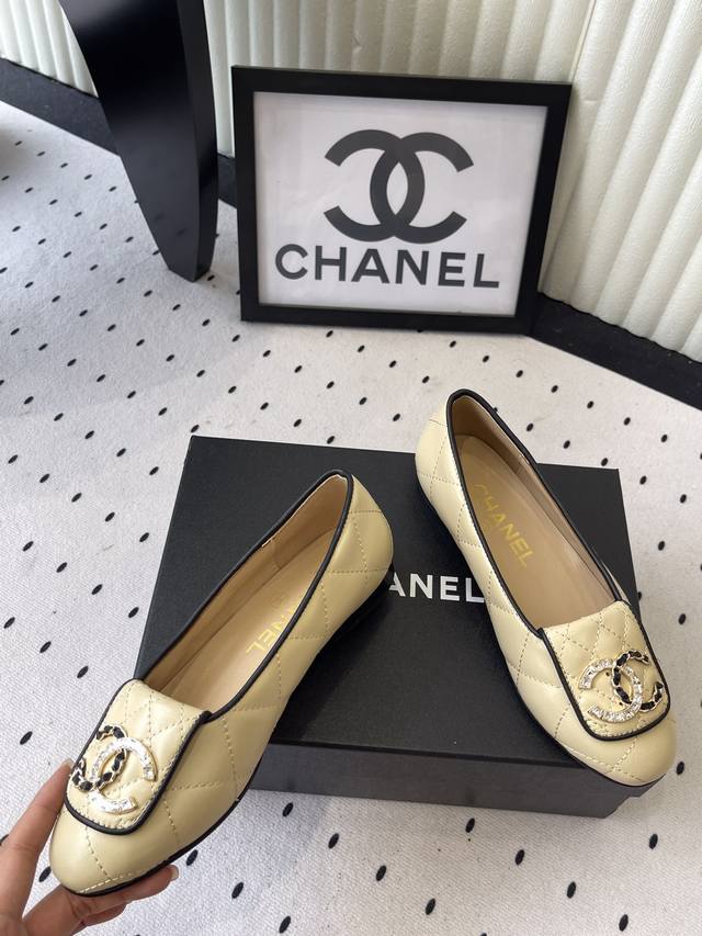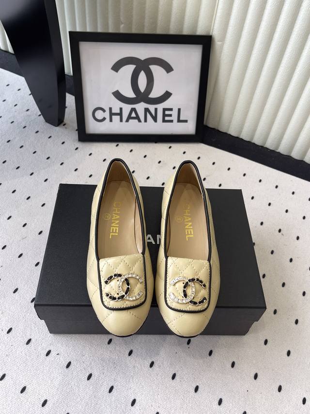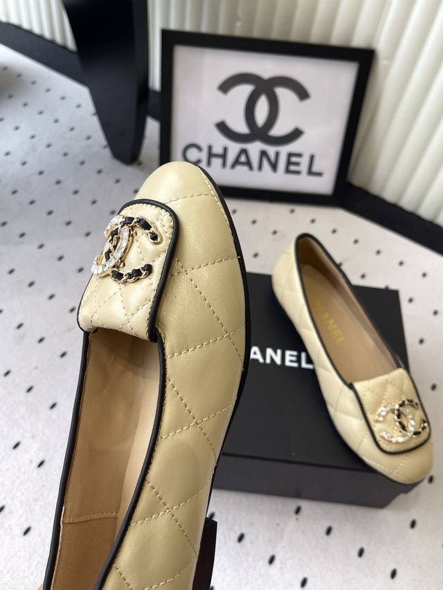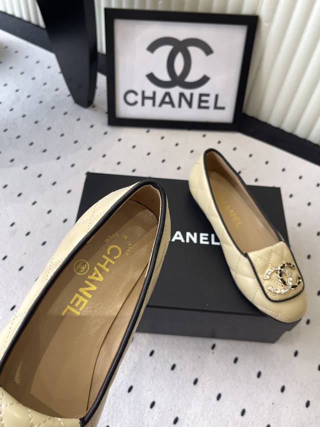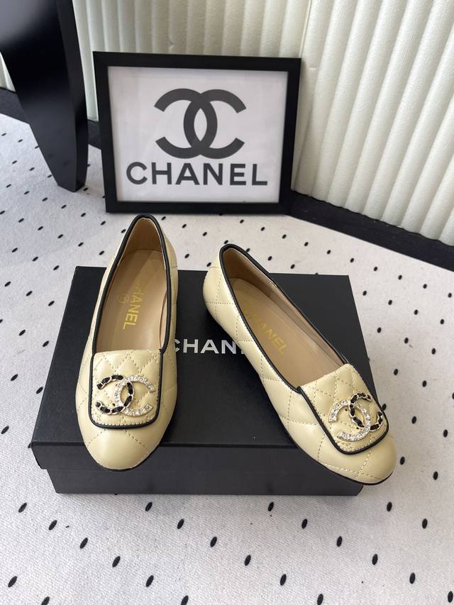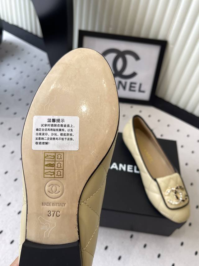 Chanel新款双C平底单鞋 高版本 走秀高级成衣定制 简约又不失甜美俏皮 纯色面料清爽易搭 搭扣设计鞋子更跟脚 进口羊皮鞋面 羊皮内里垫脚 意大利真皮大底 S