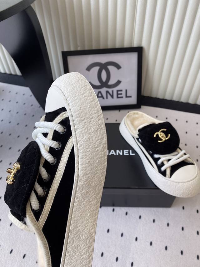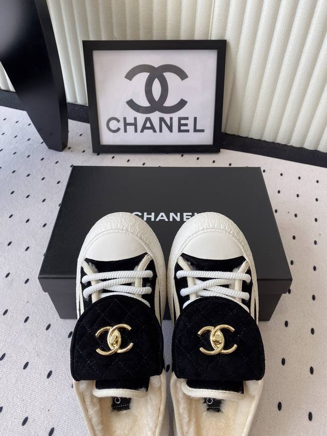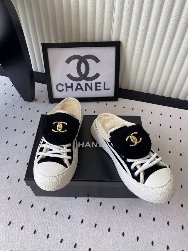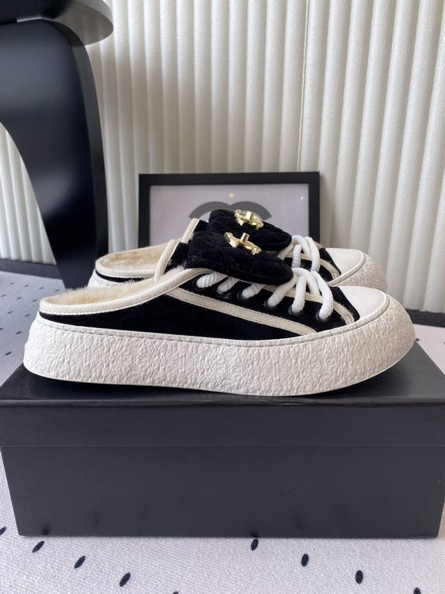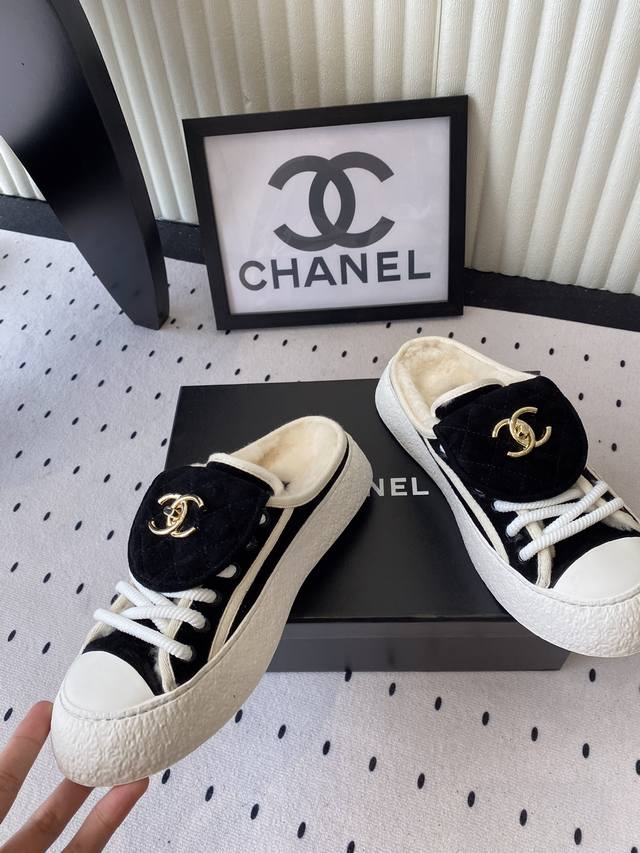Chanel新款秋冬羊毛半拖 超级喜欢这系列了 换上这款书包扣帆布鞋 感觉整个人心情都超级Nice 进口牛筋鞋面 真羊毛内里 原版耐磨Tpu大底 Size:35-39 40 41定制不退换