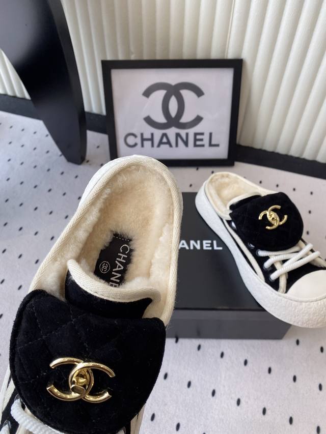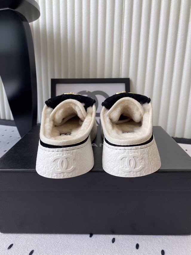 Chanel新款秋冬羊毛半拖 超级喜欢这系列了 换上这款书包扣帆布鞋 感觉整个人心情都超级Nice 进口牛筋鞋面 真羊毛内里 原版耐磨Tpu大底 Size:35