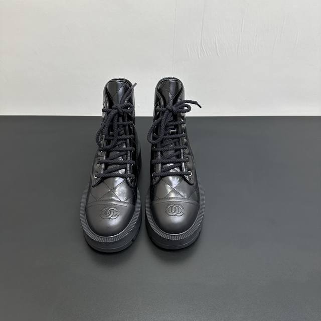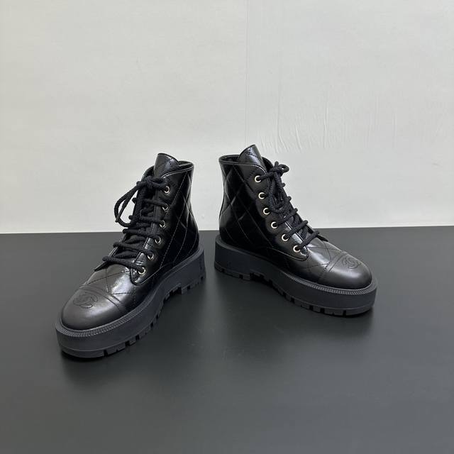 Chanel香奈儿小香 新款短靴系带马丁靴 ~~~独家推荐,市场最高版~~~原版1:1定制, 面料:羊皮 内里:羊皮里 大底:意大利橡胶组合皮底 底厚:4.5C