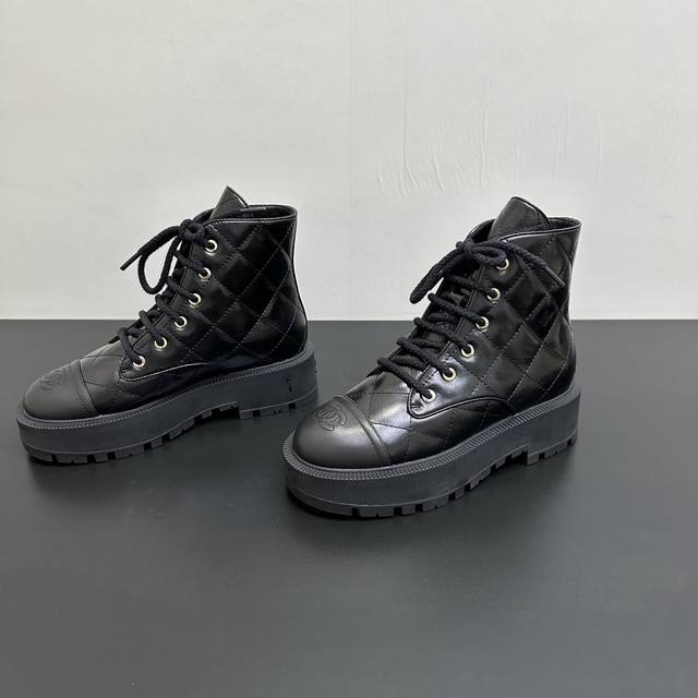 / Chanel香奈儿小香 新款短靴系带马丁靴 ~~~独家推荐,市场最高版~~~原版1:1定制, 面料:羊皮 内里:羊皮里 大底:意大利橡胶组合皮底 底厚:4.5C