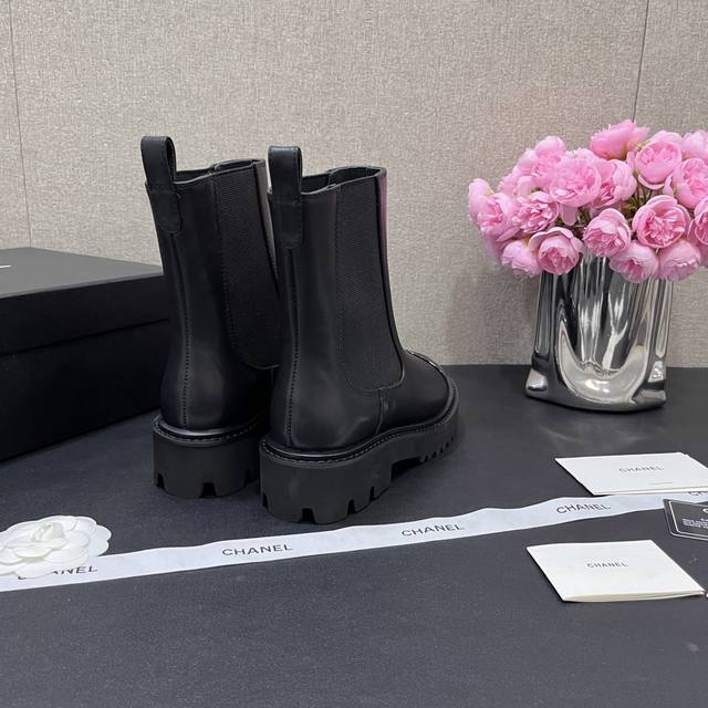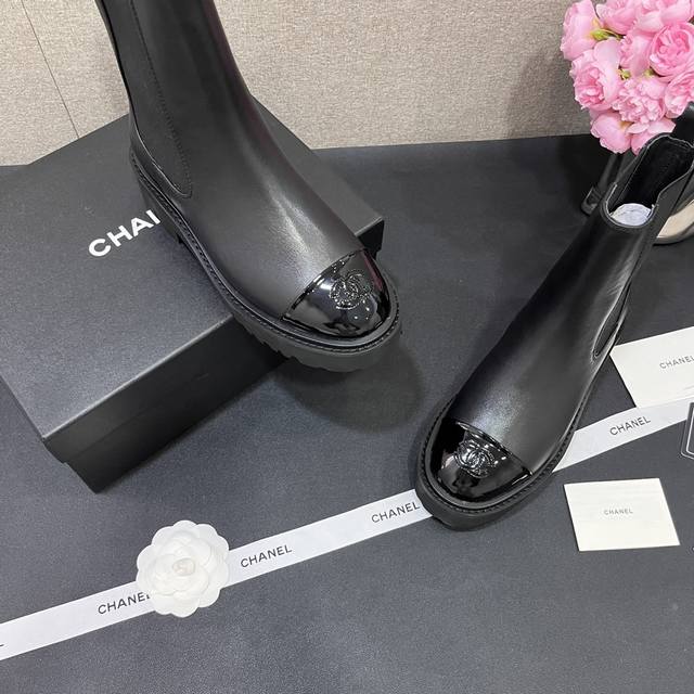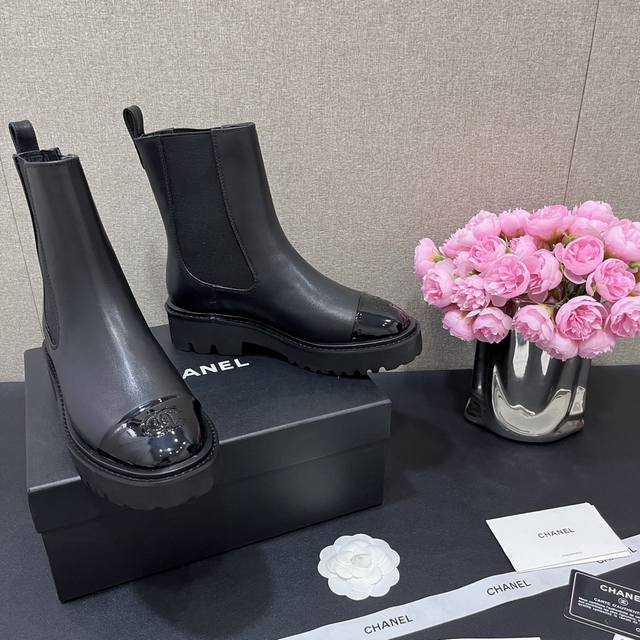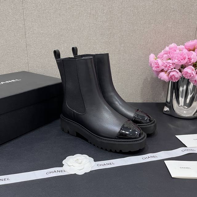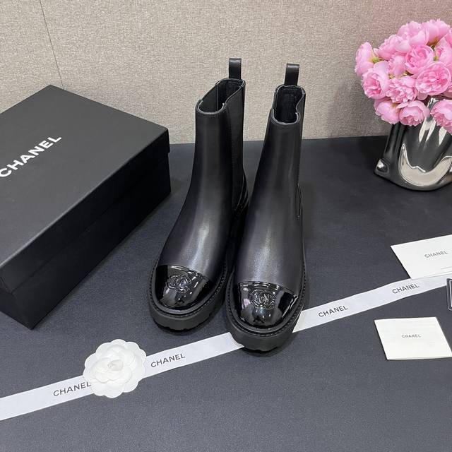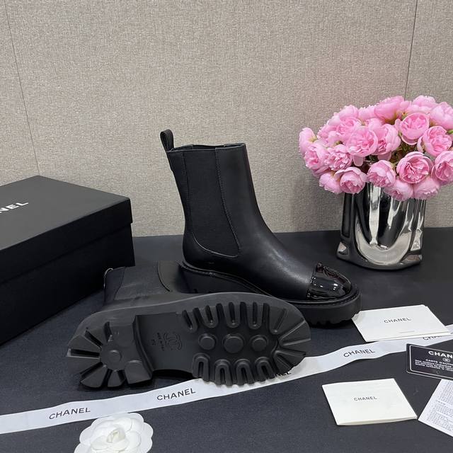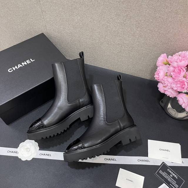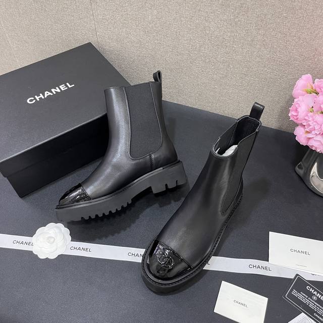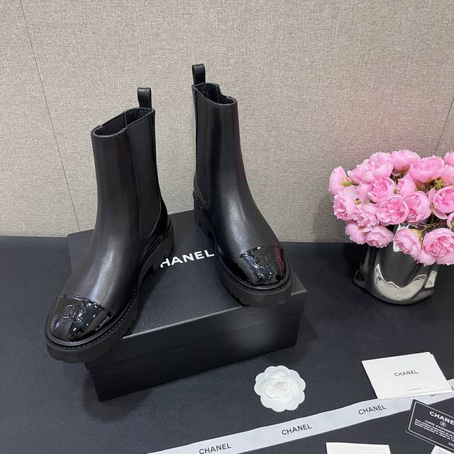 Chanel香奈儿 秋冬B新款单鞋厚底松紧带切尔西靴漆皮头拼接短靴 鞋面原版定制 牛皮拼接 垫脚羊皮内里 重金开模发泡大底 跟高4.5Cm 码数35-40定