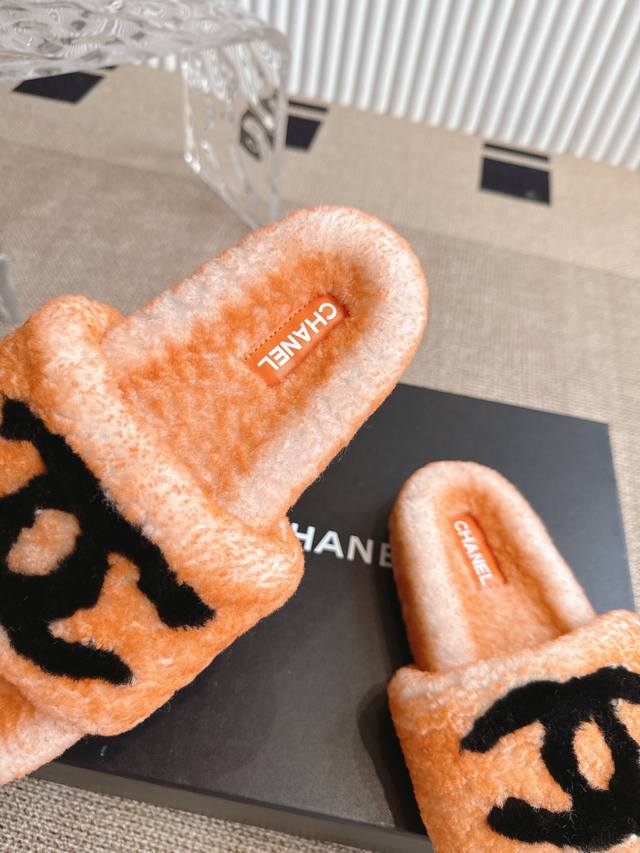 Chanel 香奈儿双色毛拖 香奈儿厚底懒人时尚、优闲风系列潮款毛拖 1:面料:真皮羊羔毛 2:内里:真皮羊羔毛 3:垫脚:真皮羊羔毛 4:大底:耐磨防滑橡胶大