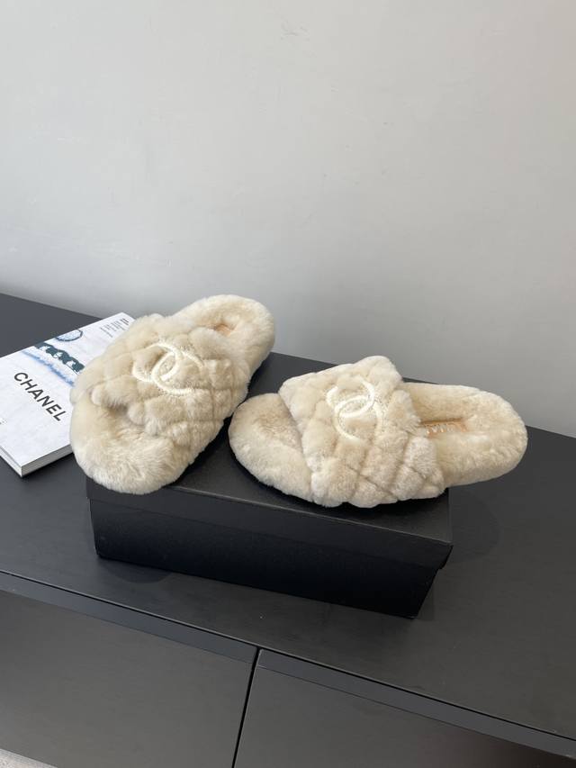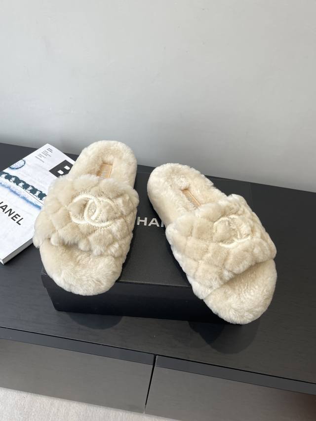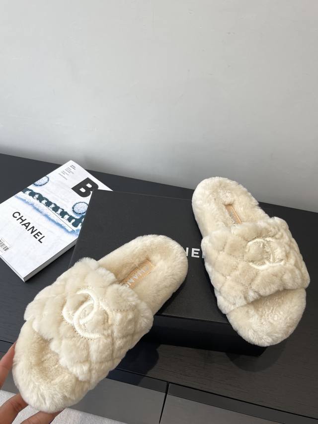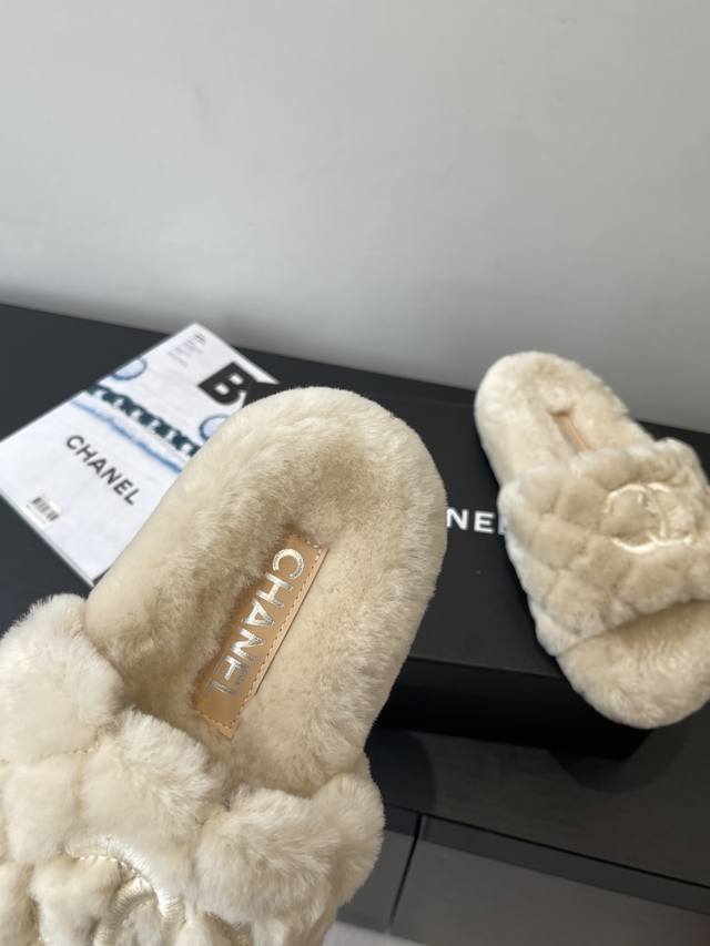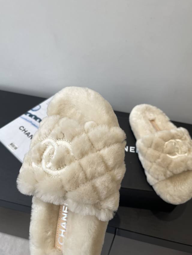 Chanel 香奈儿 秋冬经典 双C羊毛拖鞋 这款毛拖真的是真太可爱了 柔软蓬松的毛毛 舒服暖脚 增高显腿长 秋冬搭配袜子 休闲又慵懒 上脚真的好看又时髦