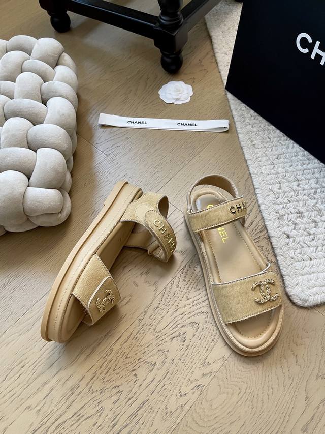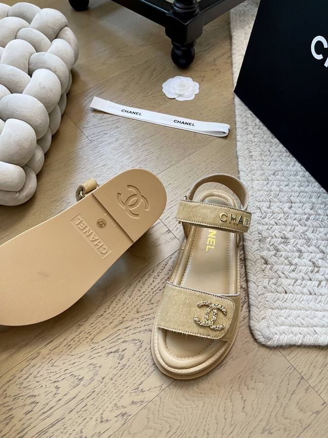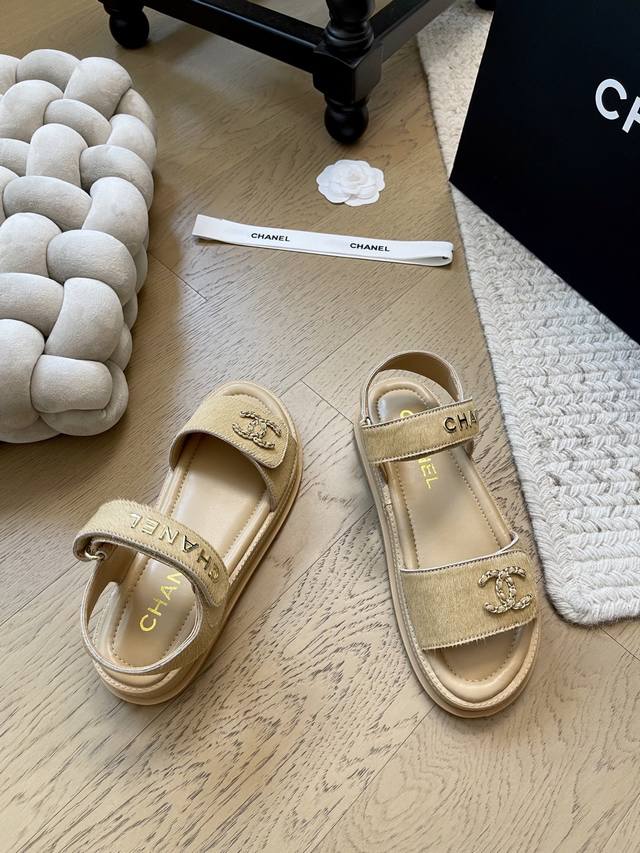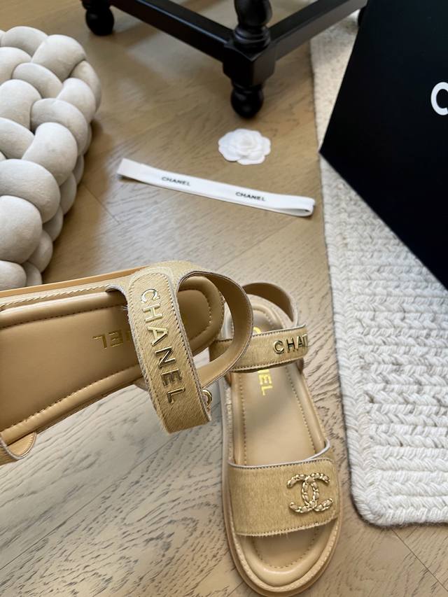 Chanel 25新款魔术贴凉鞋 顶级版本!抢先发售 鞋面马毛 内里羊皮 原版橡胶大底 码数:34-41 34 40 41定制不退不换