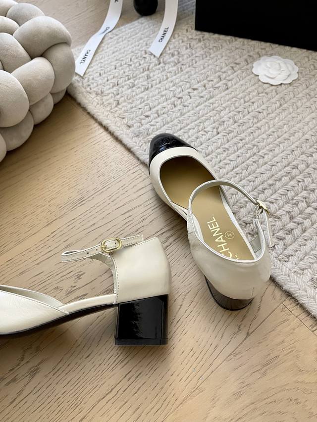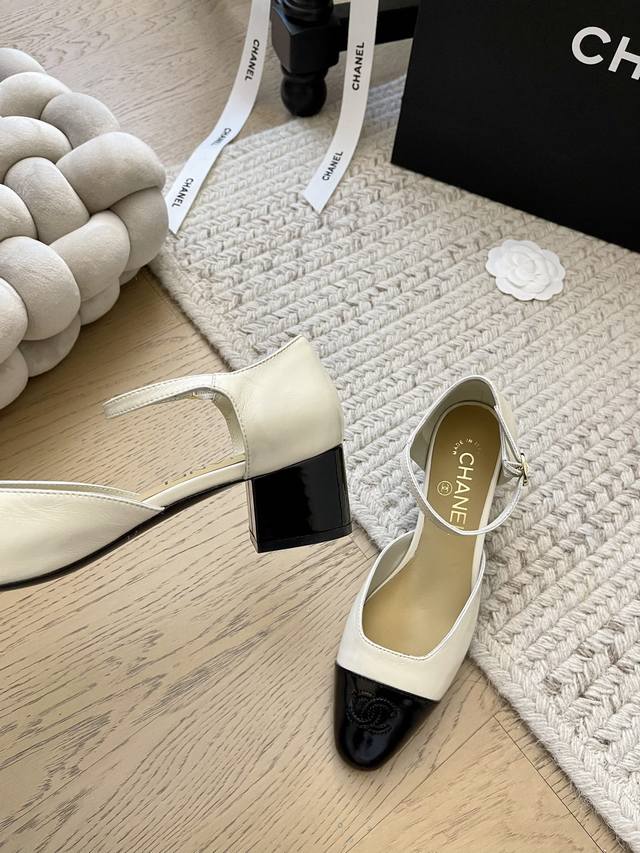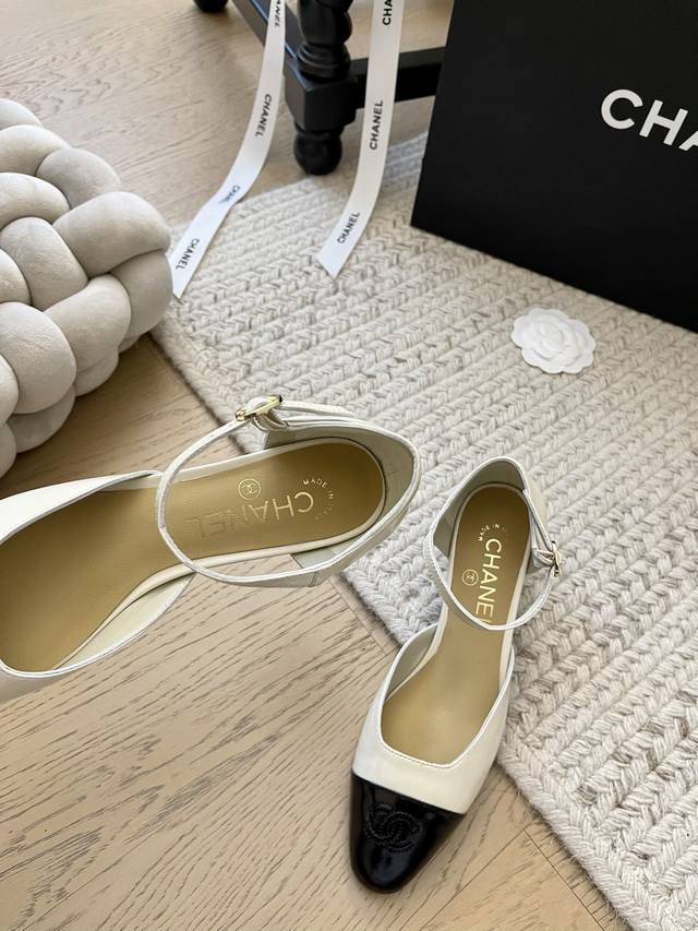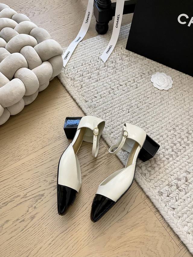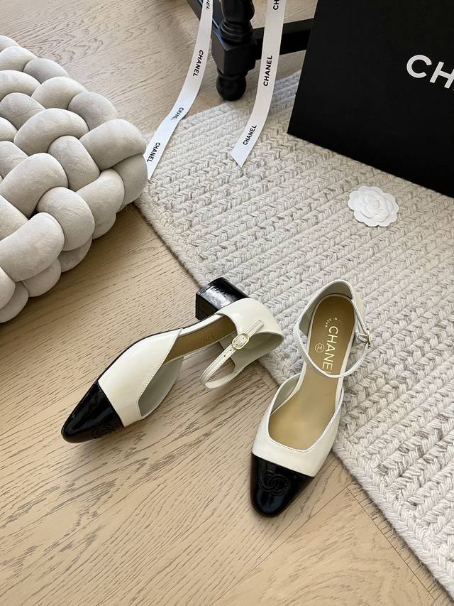 Chanel 25C早春新款粗跟单鞋! 顶级版本!这一季爆款 经典配色完美搭配 日常穿搭必备款 鞋面牛漆皮 牛皮 垫脚羊皮 真皮大底 码数:34-41 定制不退