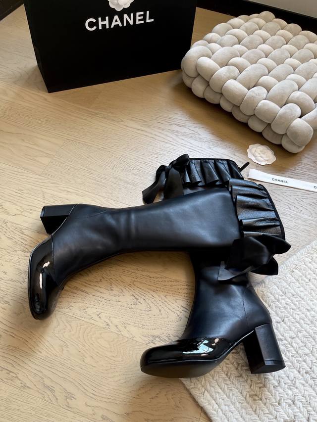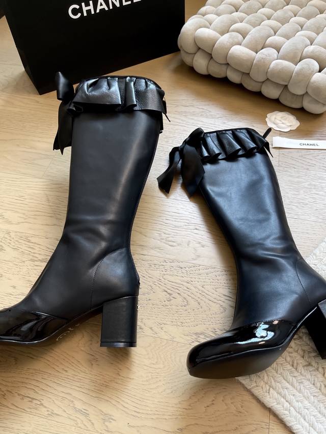 Chanel 25K秋冬粗跟蝴蝶结长短靴系列! 常青款!秋冬必入单品~ 鞋面牛皮 布面 内里进口羊皮 原版防滑大底 跟高6Cm 码数:35-41 34 40 4