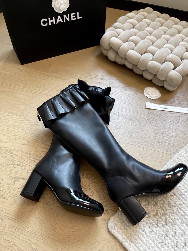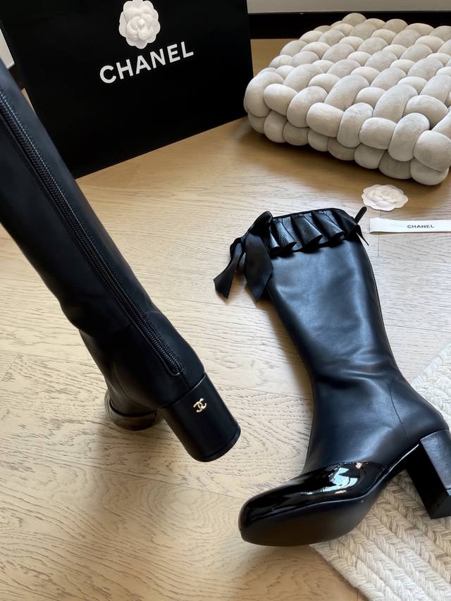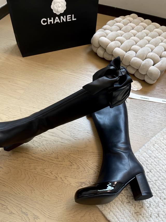 / Chanel 25K秋冬粗跟蝴蝶结长短靴系列! 常青款!秋冬必入单品~ 鞋面牛皮 布面 内里进口羊皮 原版防滑大底 跟高6Cm 码数:35-41 34 40 4