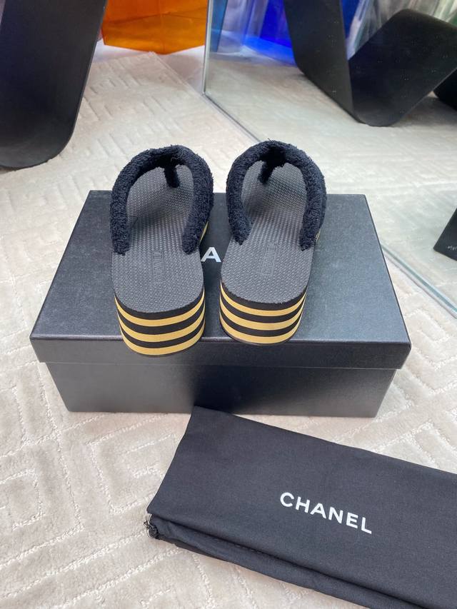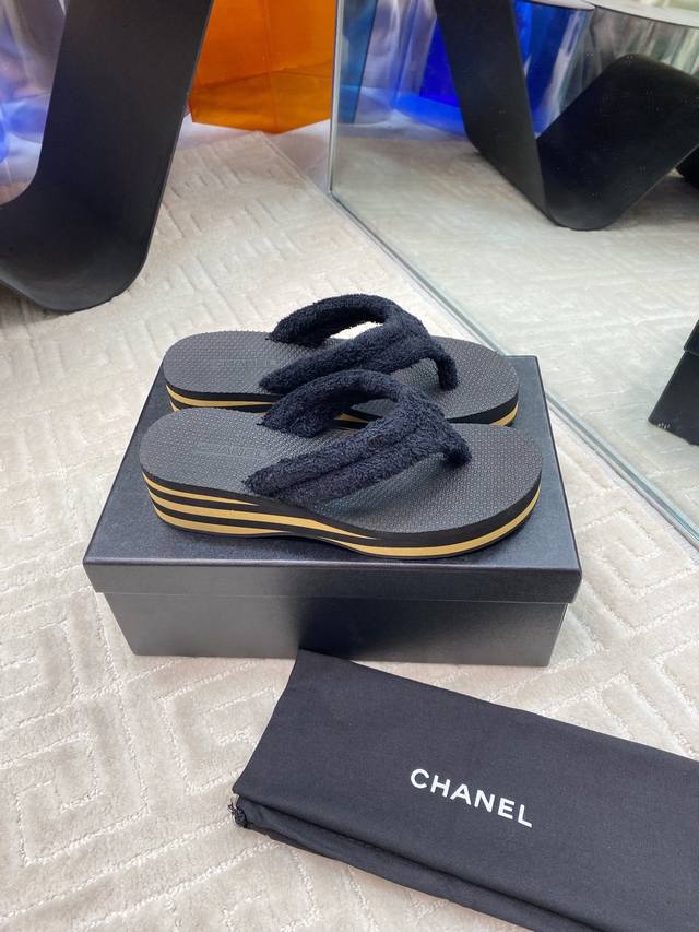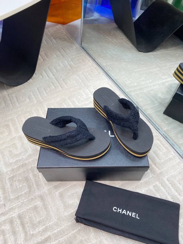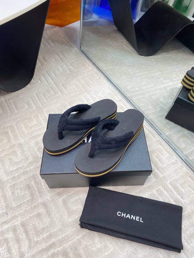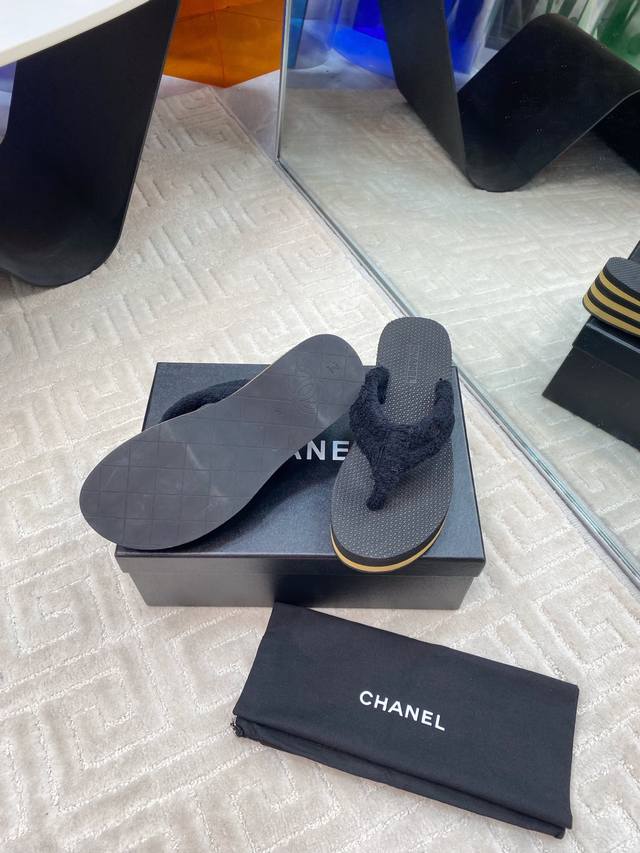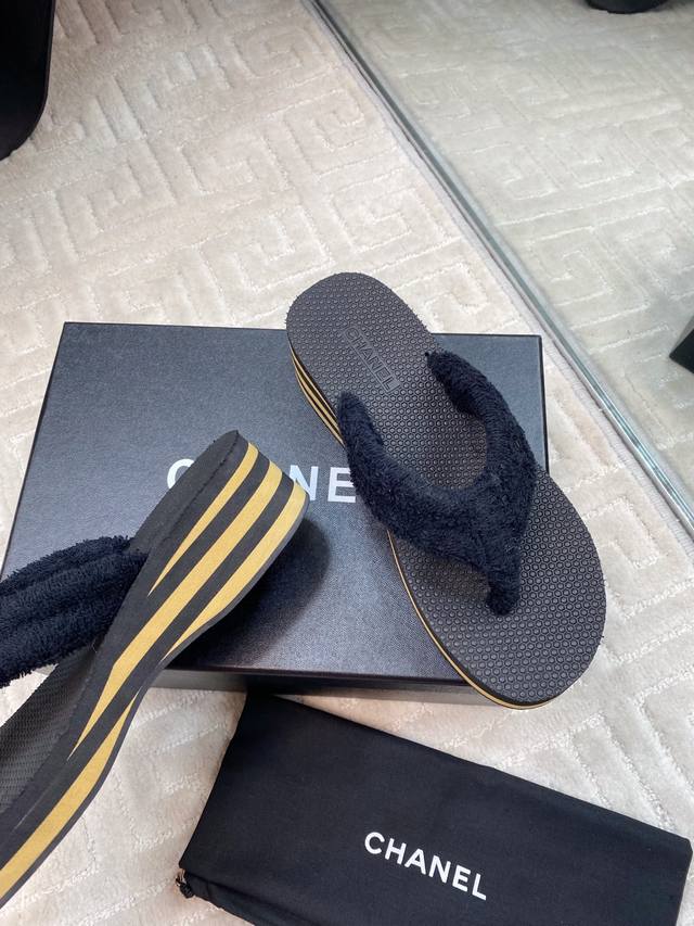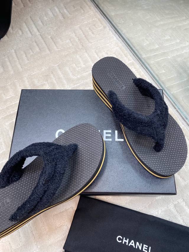 Chane* 早春系列夹趾人字拖将随性度假风与高级成衣质感完美融合,打造慵懒却不失精致的足间美学。 柔软毛巾鞋面亲肤透气,鞋面点缀品牌标志性金属Logo,细节处诠释低调奢华的Chane*基因。4.5Cm微坡跟悄然拉长腿部线条,步履如履平地,兼顾舒适度与优雅体态,防滑橡胶大底轻盈耐磨。以极简设计承载高级质感,让每一步都踏出从容与自由。
