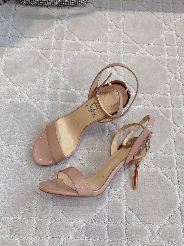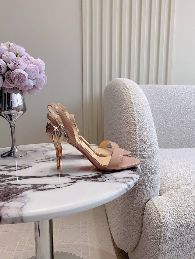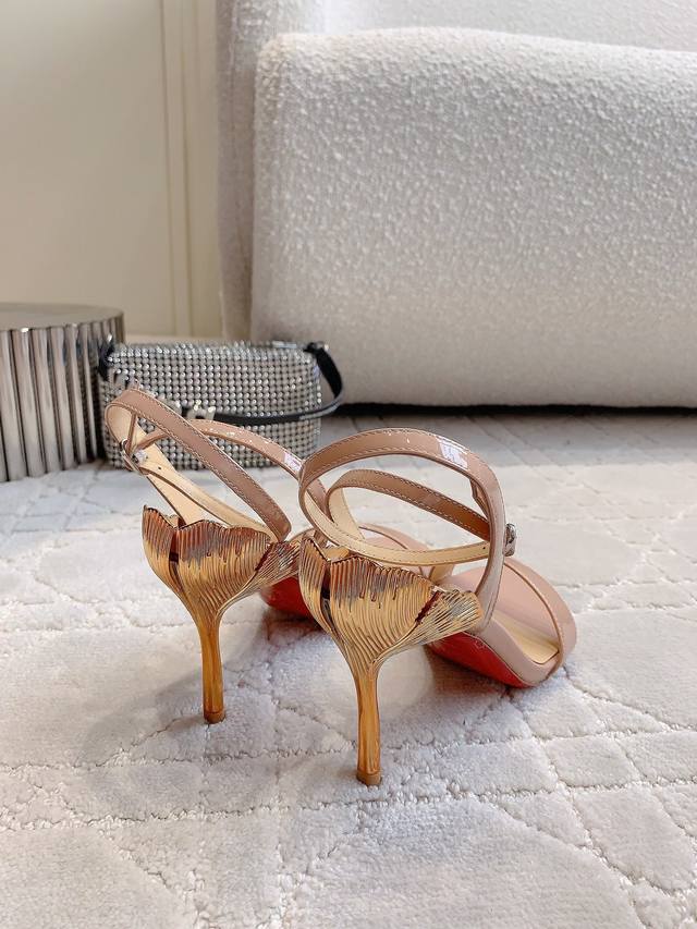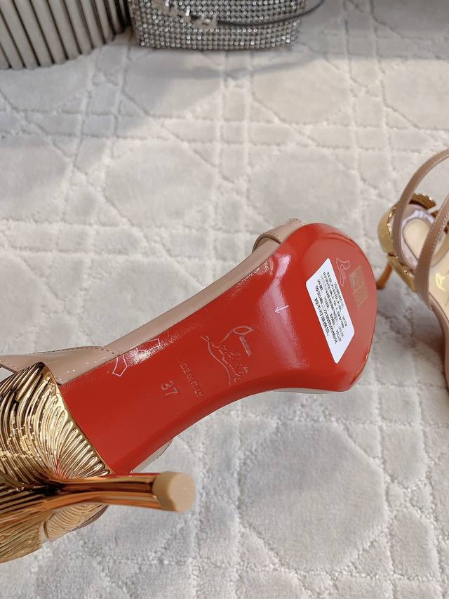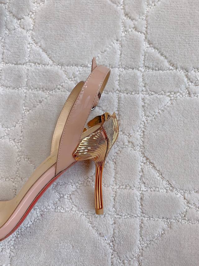 Christian Loubouti* 新款红底高跟凉鞋 花朵鞋跟设计非常有特点 流畅的曲线勾勒曼妙风情 尽显性感风姿 万年经典款
