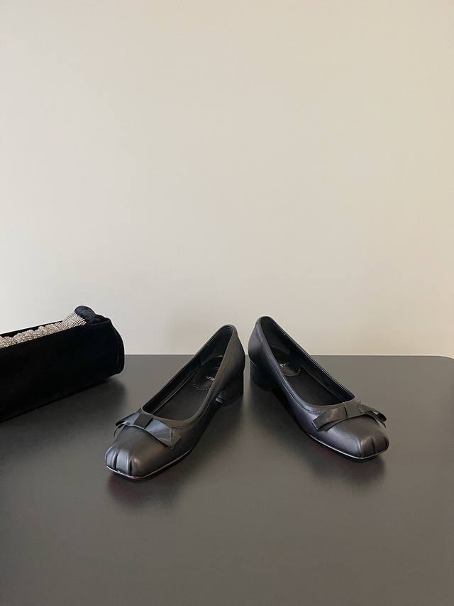 Cistian Loubouti Cl春夏新款 蝴蝶结 玛丽珍小粗跟 单鞋