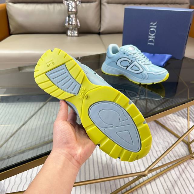 低帮运动鞋 采用灰色网眼织物和白色科技面料精心制作,Cd30”图形标志,鞋跟和鞋舌饰以“Dio~B30”和“Cd30”标志。格外轻盈的雕刻效果橡胶鞋底搭配标志性的点缀提升格调,内部弹力细节塑造理想的舒适穿着体验。可与各式休闲造型搭配,彰显时尚现代的运动风范